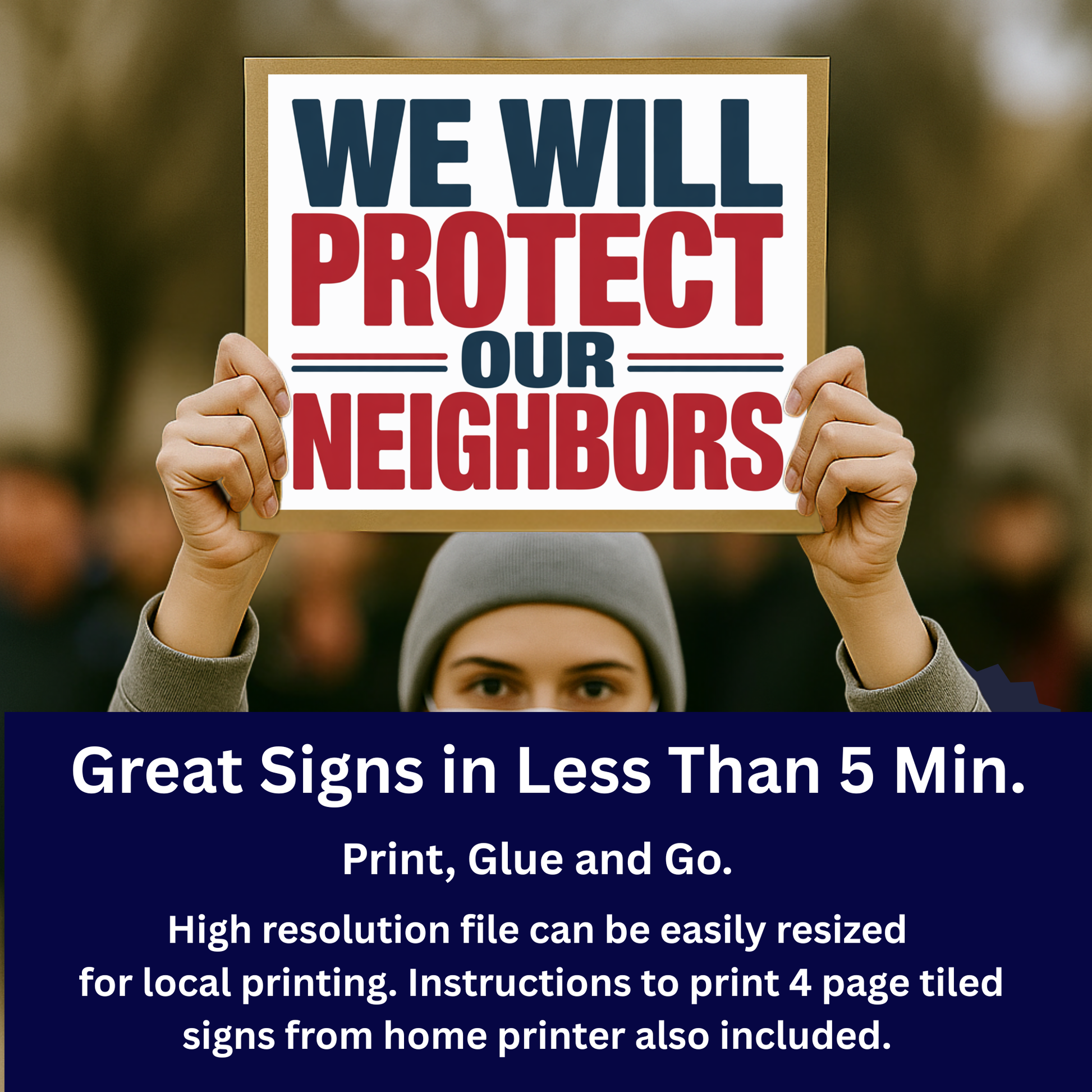 Anti ICE Protest Sign - We Will Protect Our Neighbors - Printable Protest Sign Kit - Protest Sign PNG