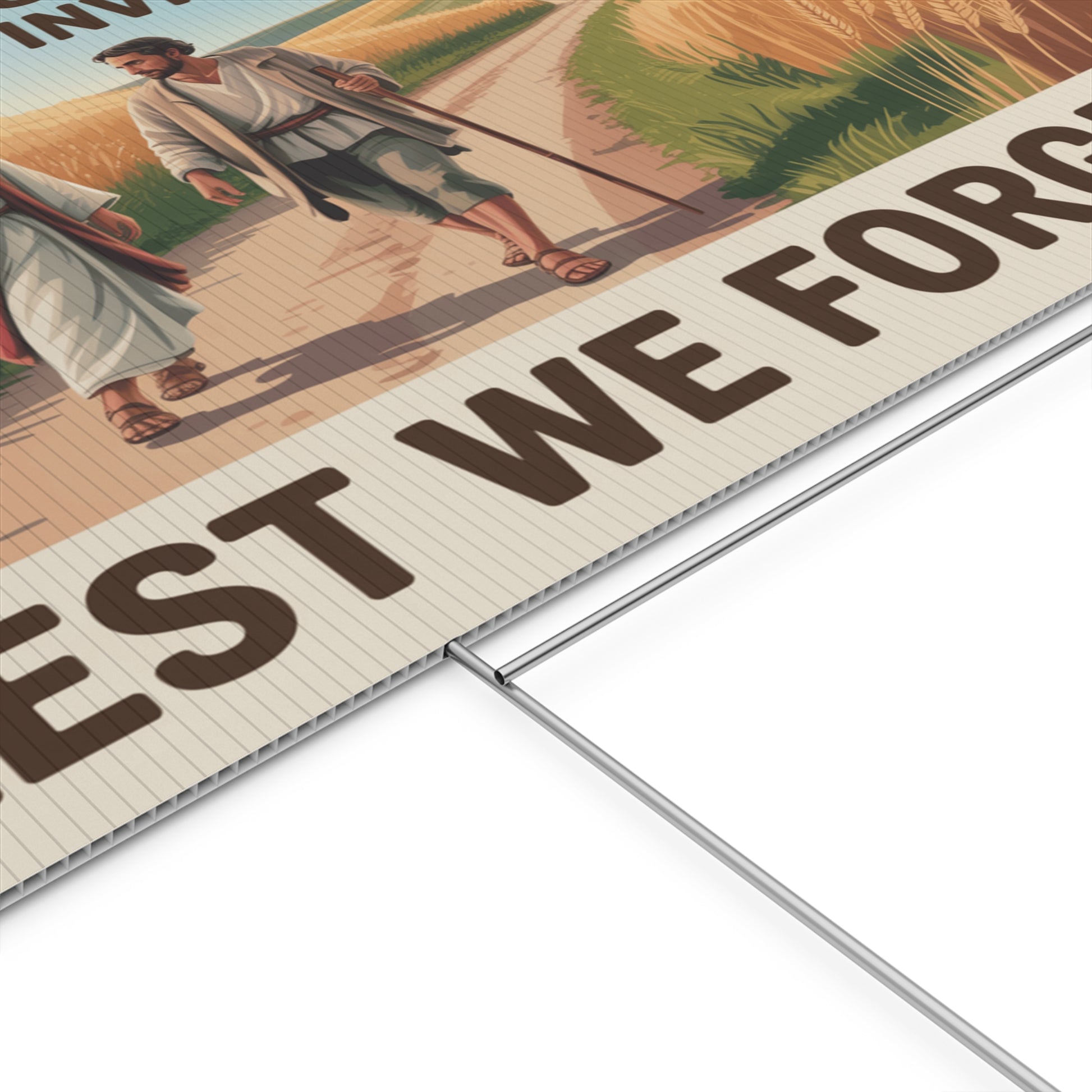 Printed on durable corrugated plastic and shipped with sturdy H-stakes, these signs stand up to the elements while spreading powerful messages that blend faith, empathy, and civic pride.