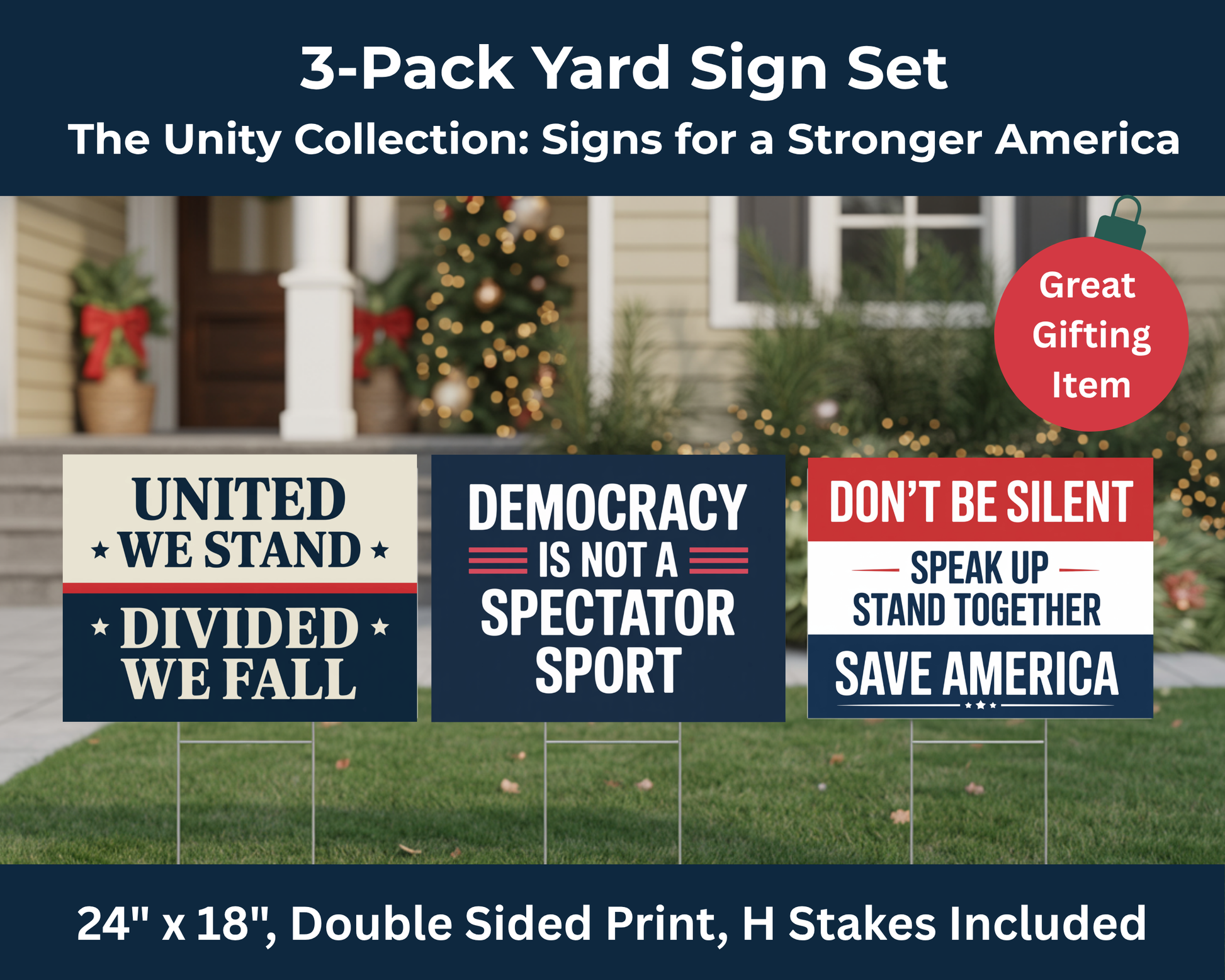 Unity & Action 3-Pack — Bold Patriotic Yard Signs That Inspire Courage and Connection