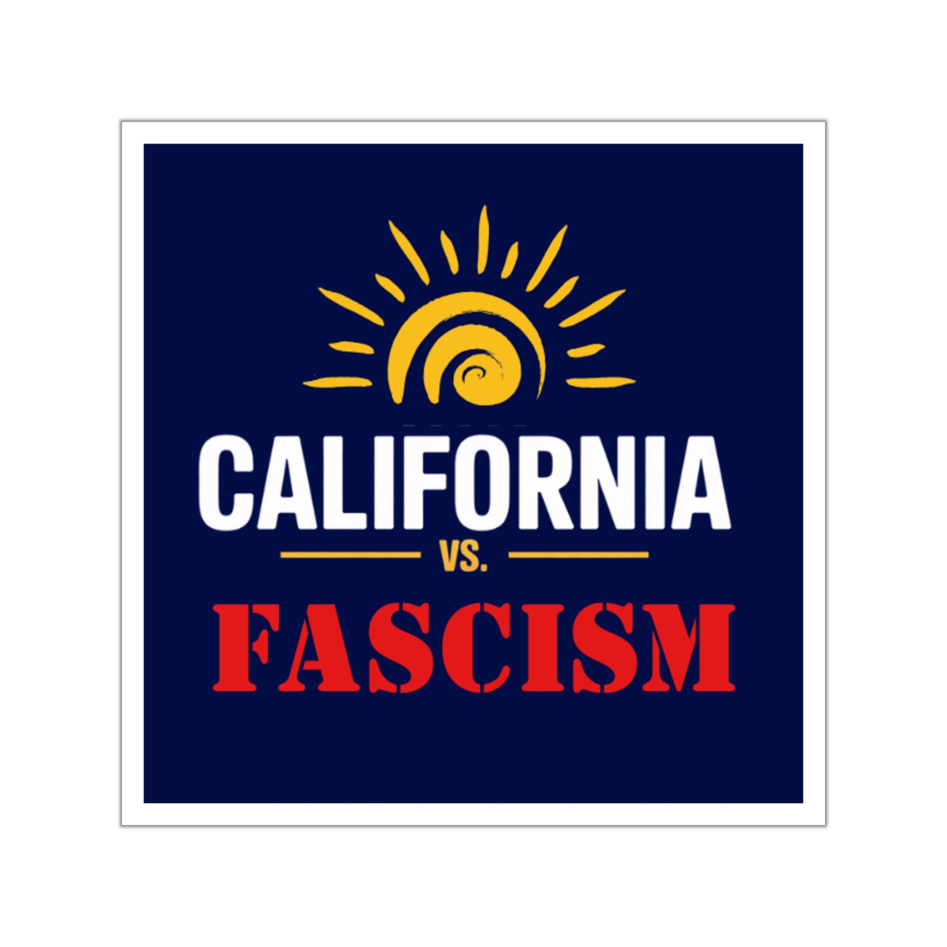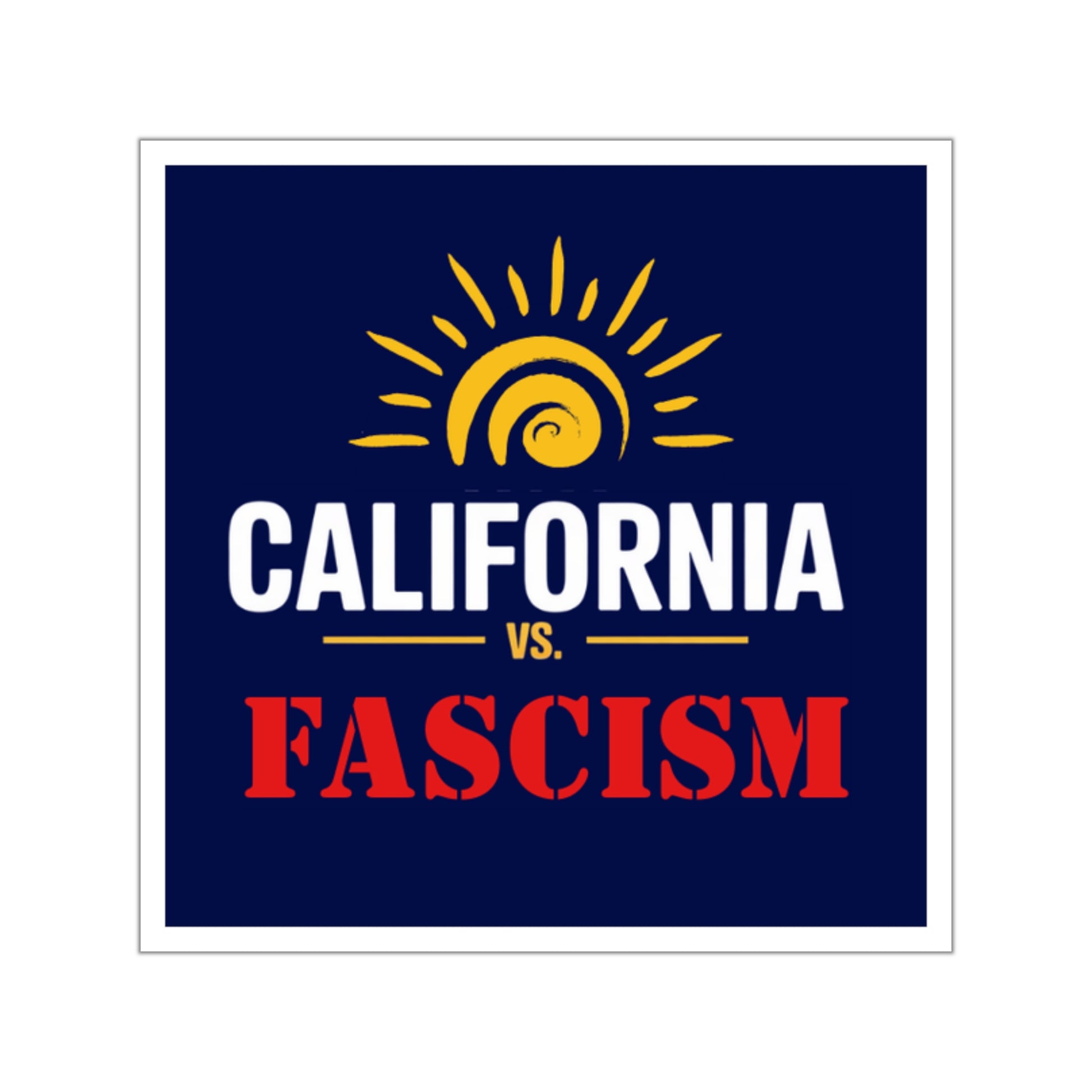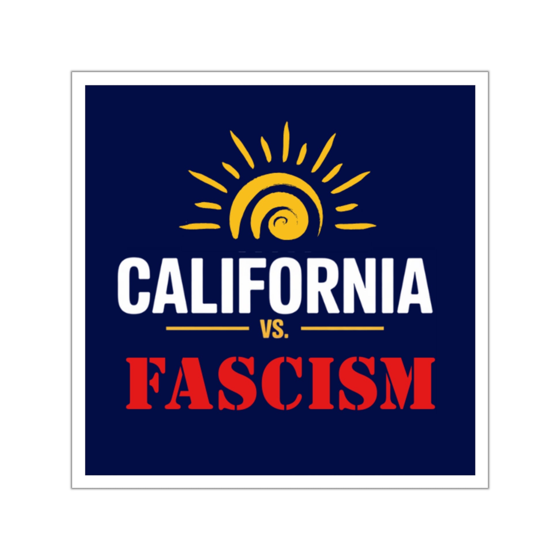 California vs. Fascism is custom printed on this premium vinyl sticker that is waterproof, UV resistant and a perfect car sticker or laptop sticker.