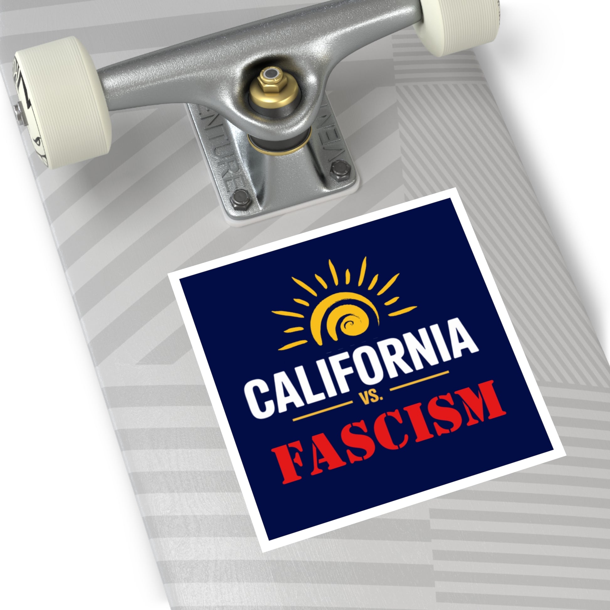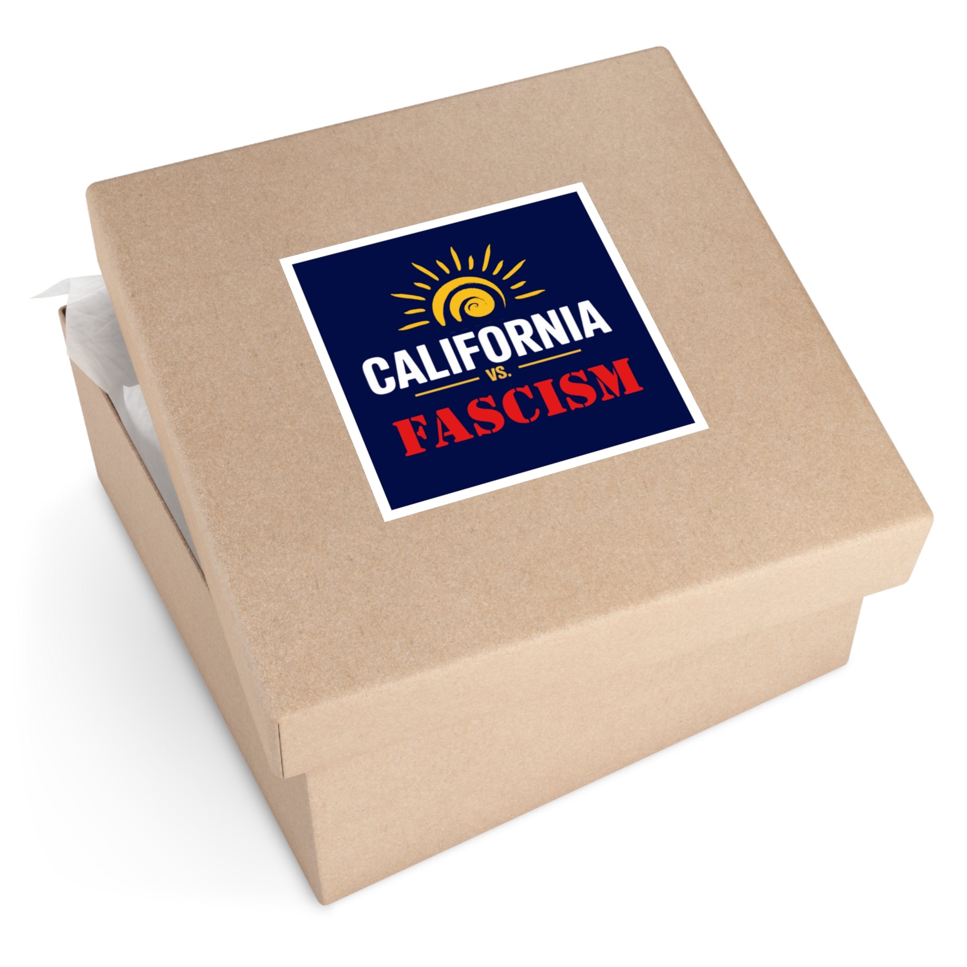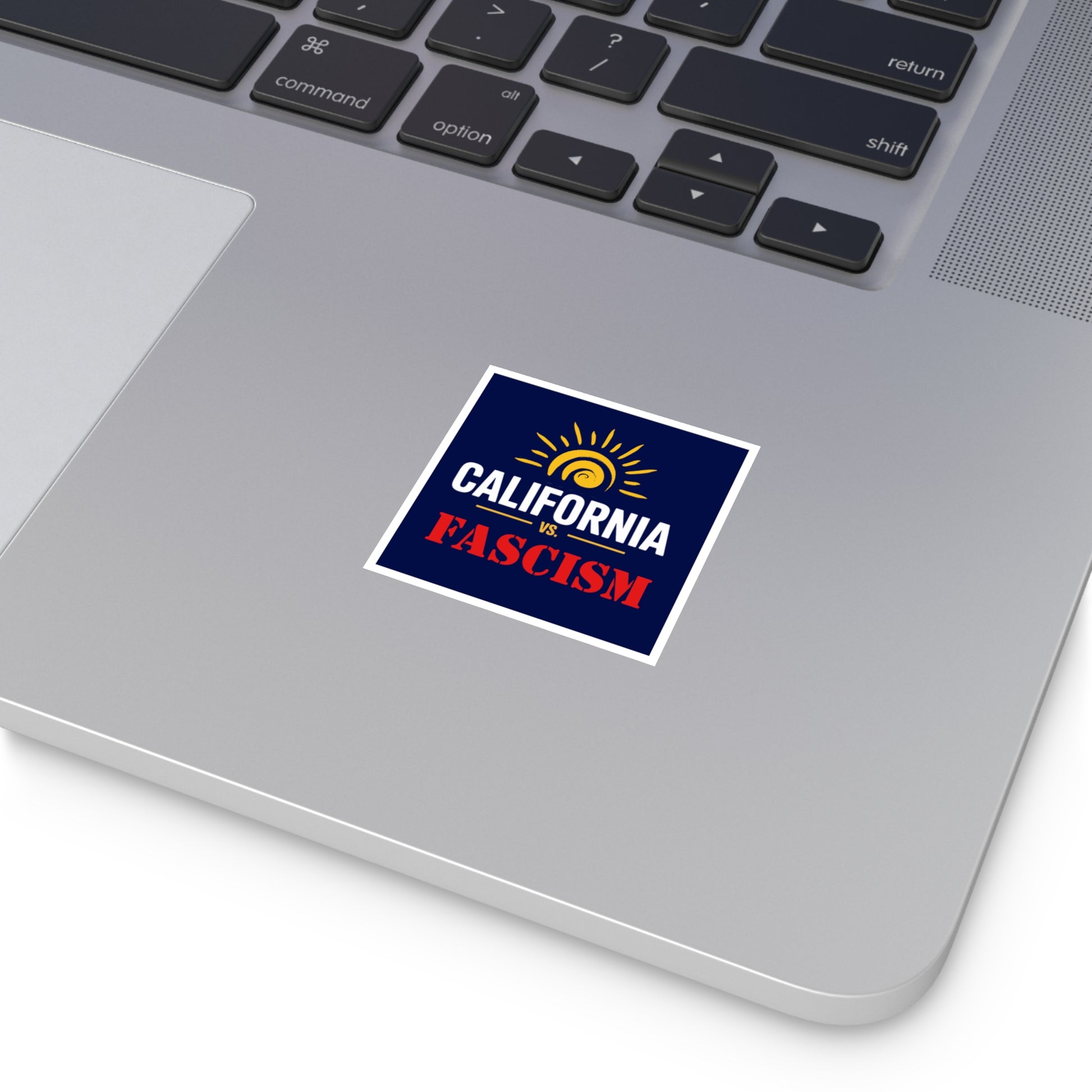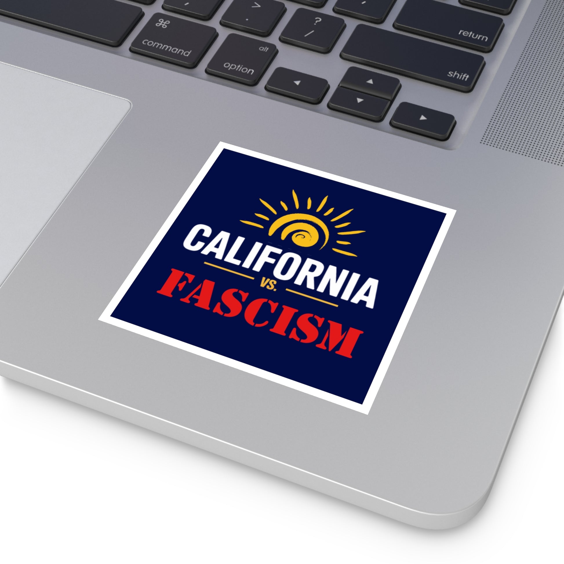 California vs. Fascism is custom printed on this premium vinyl sticker that is waterproof, UV resistant and a perfect car sticker or laptop sticker.