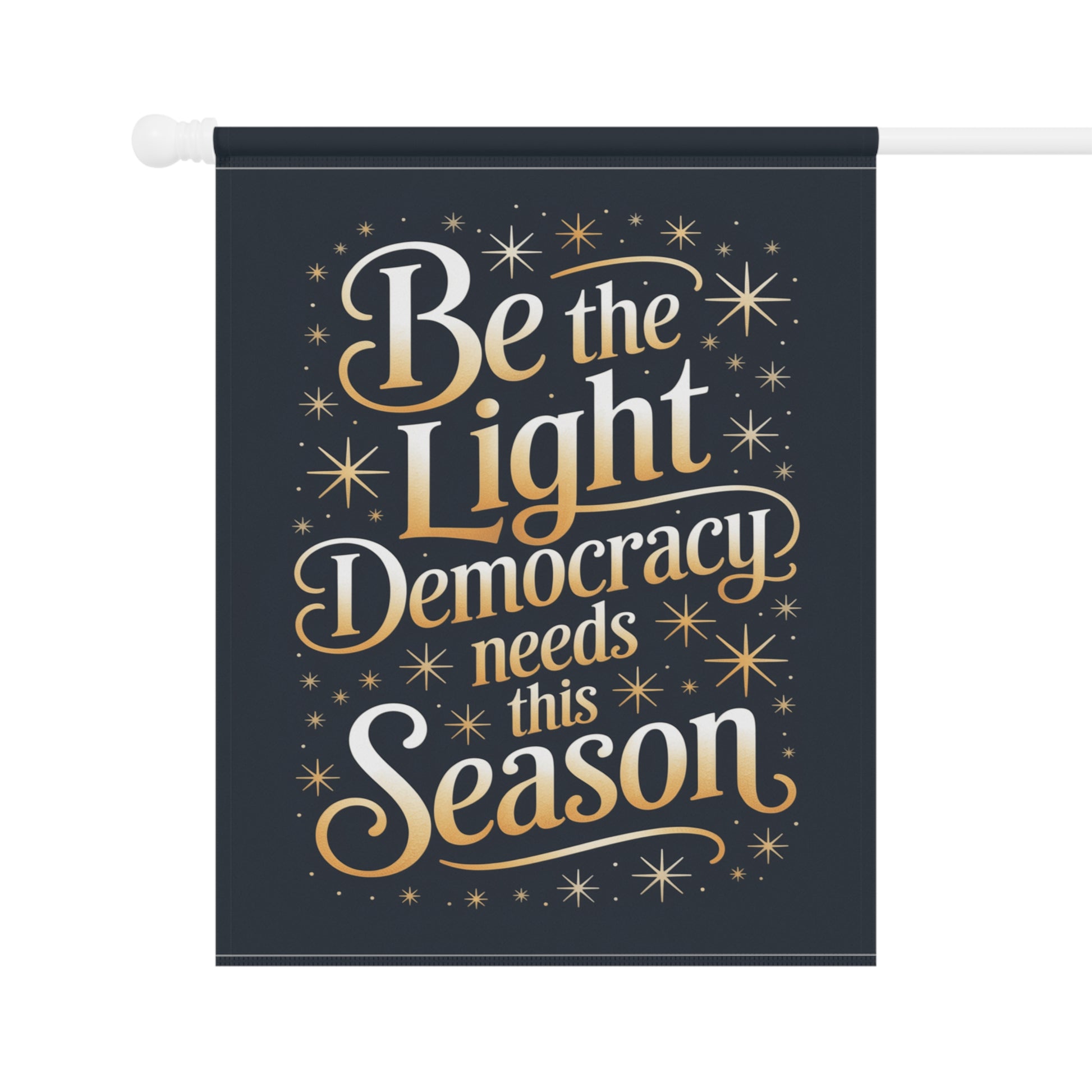 Our “Be the Light Democracy Needs This Season” double-sided Christmas garden flag delivers holiday cheer with a side of truth — blending humor, courage, and civic pride into one bold banner.