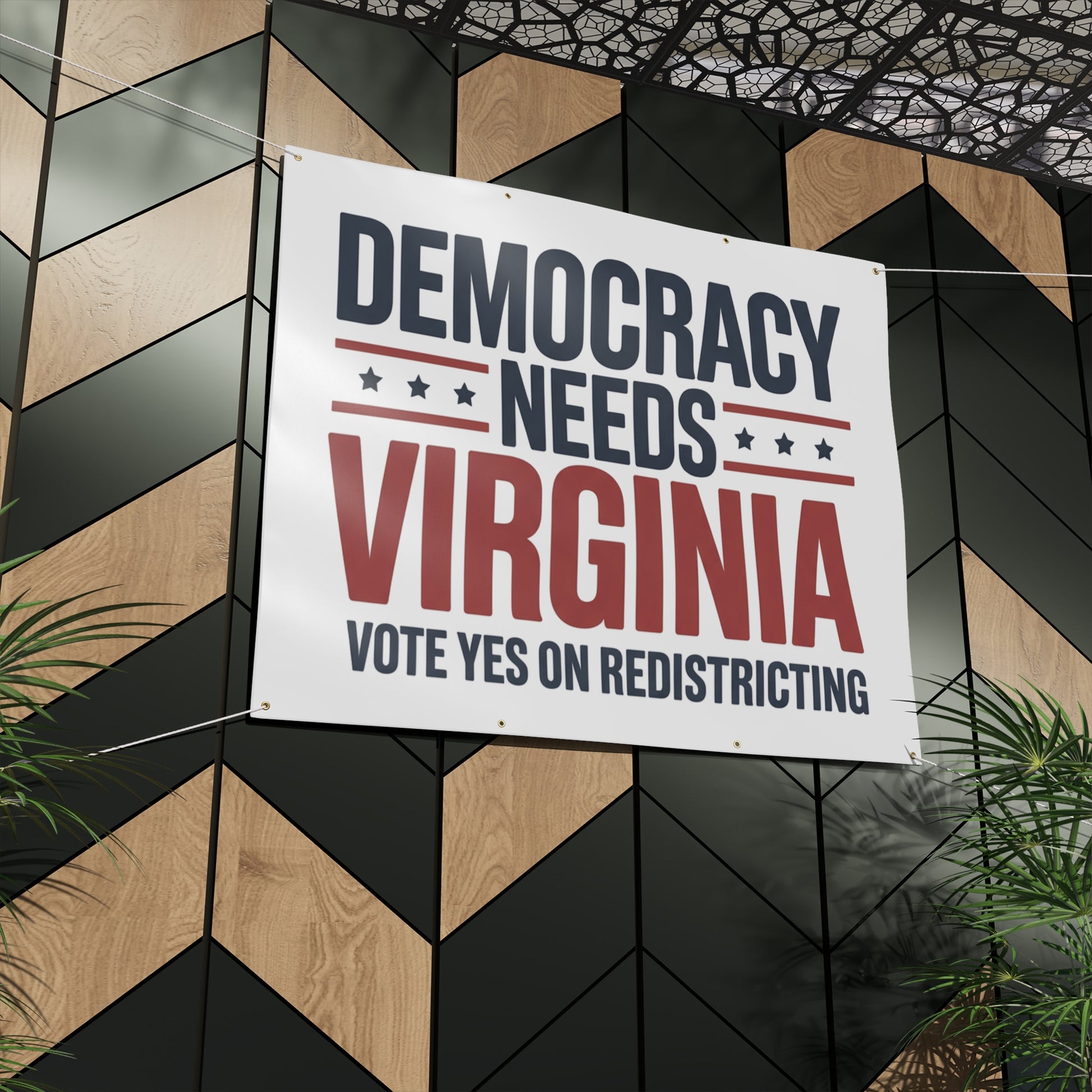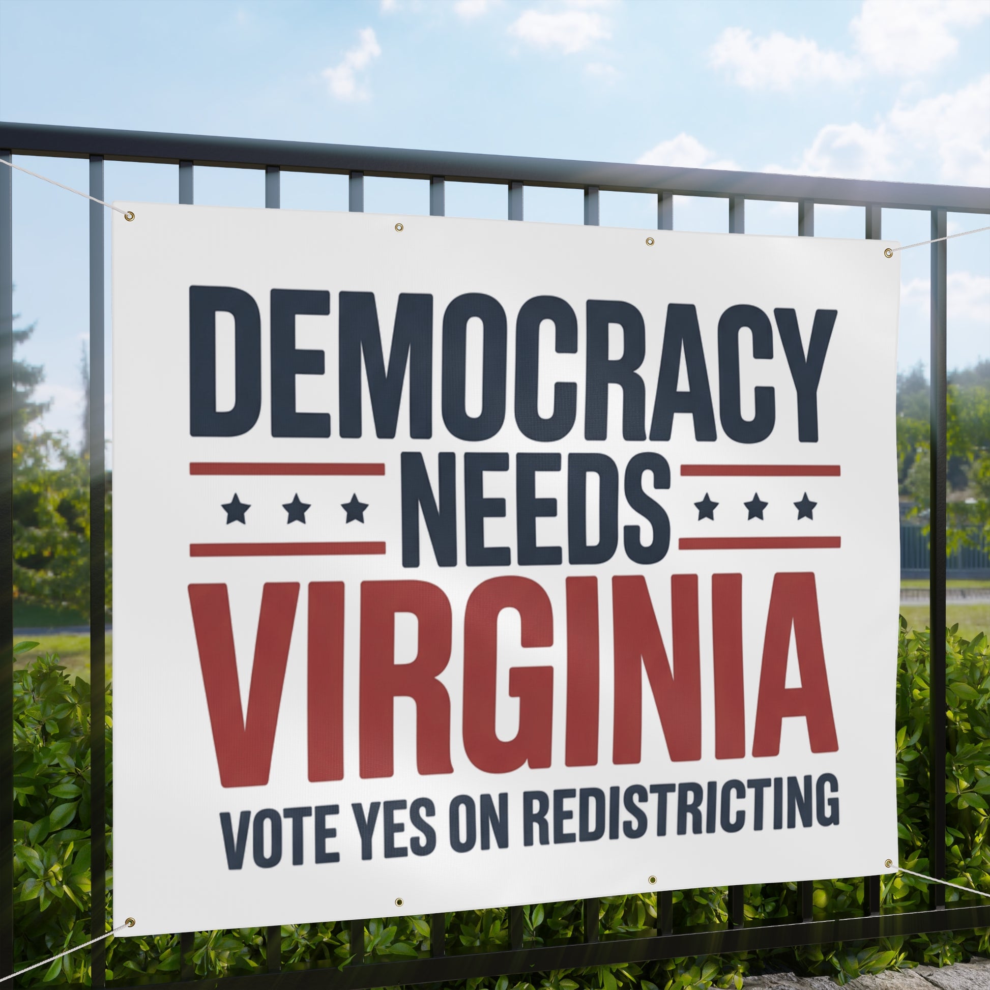 Democracy Needs Virginia, Vote Yes on Redistricting Vinyl Banner — Virginia Redistricting Signs