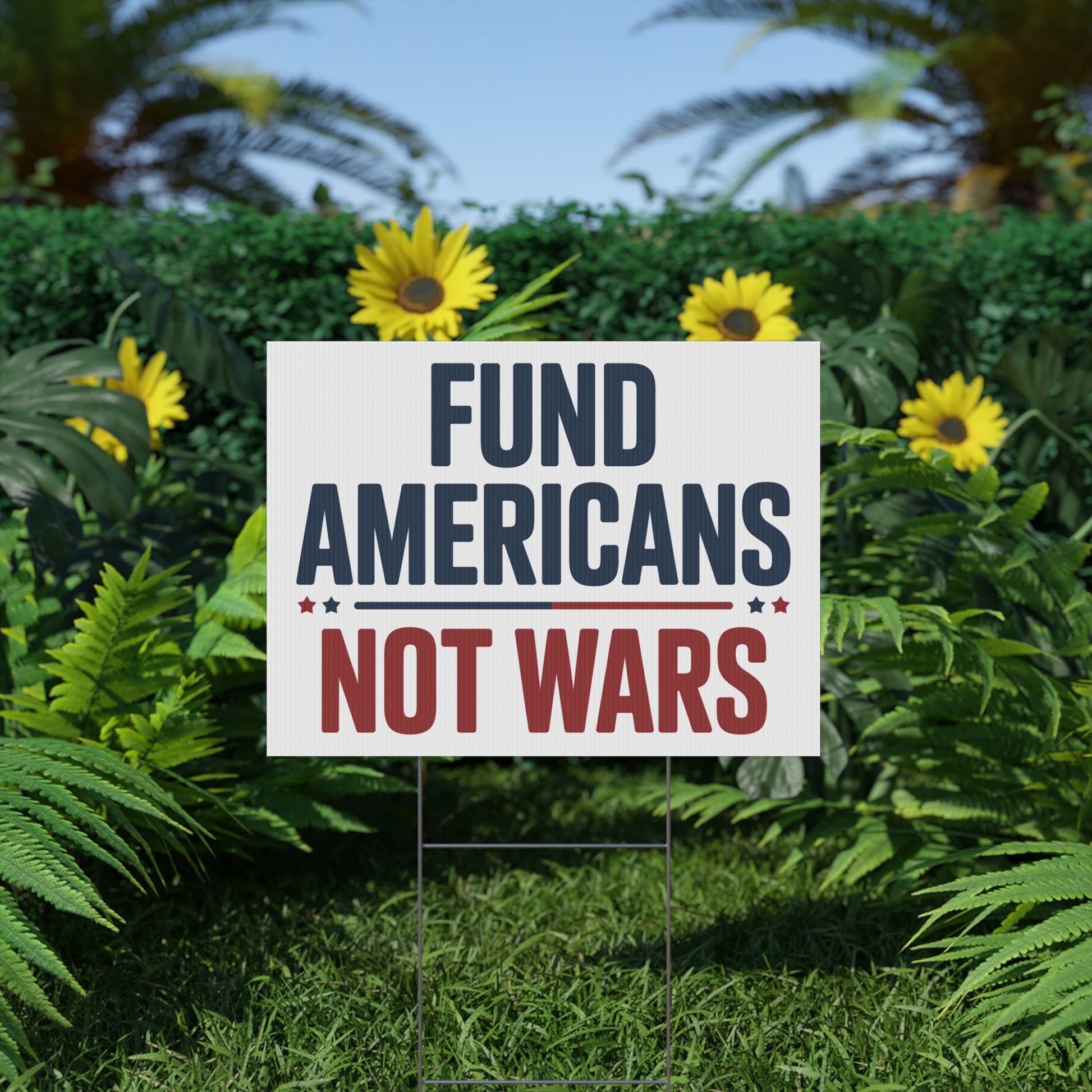 Fund Americans Not Wars - Anti War Yard Sign - No Wars Yard Sign