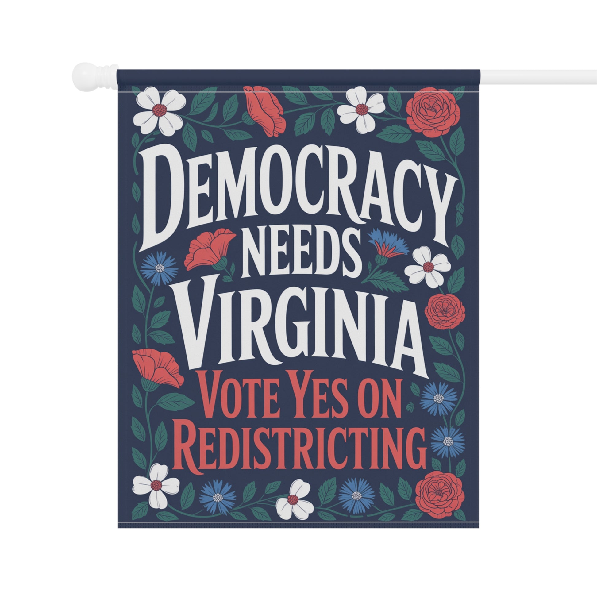 Garden Flag — "Democracy Needs Virginia — Vote Yes on Virginia Redistricting"