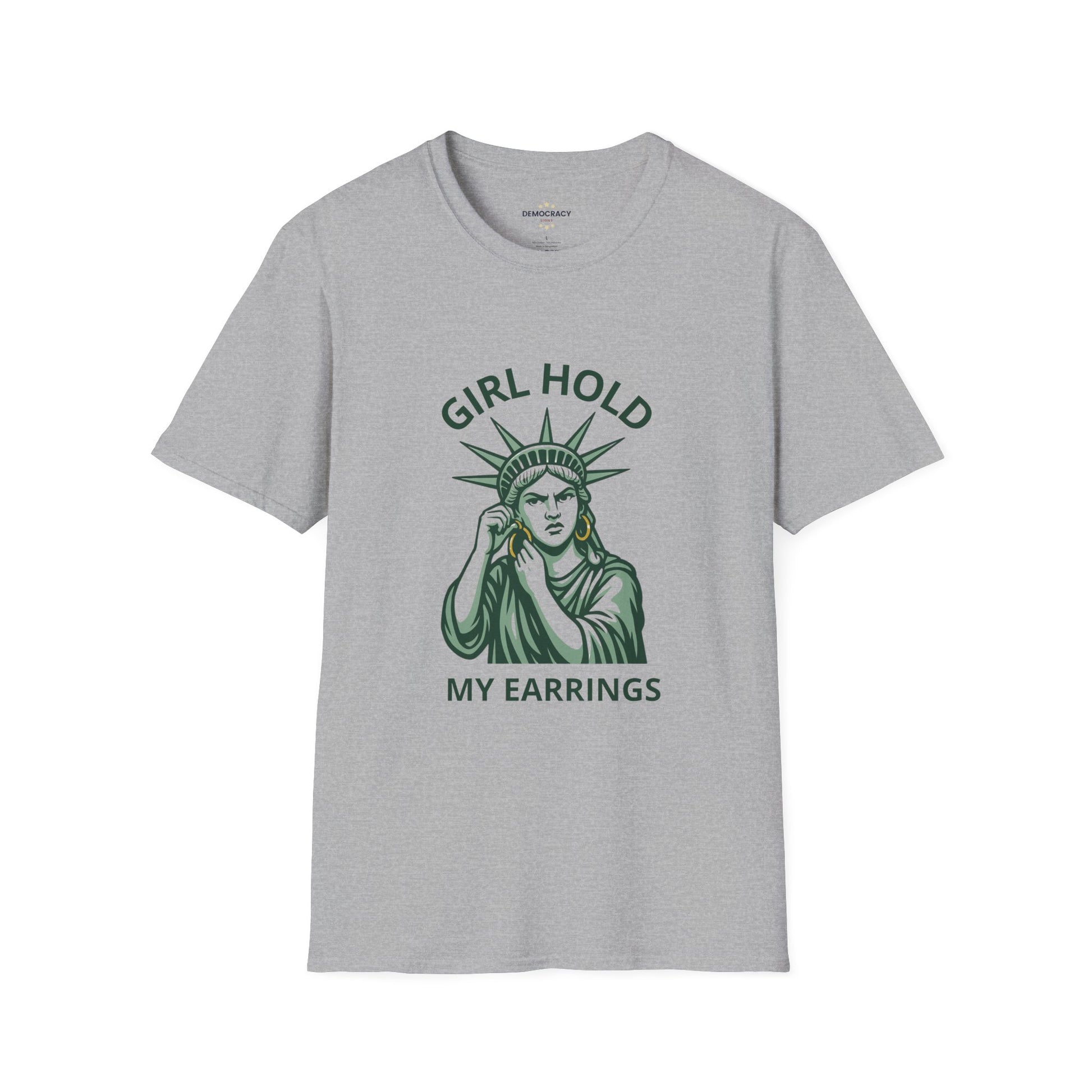 Girl Hold My Earrings Tshirt, Soft, Unisex Style, Lady Liberty Tshirt, Resistance Tshirt, Funny Political Tshirt, Free Shipping