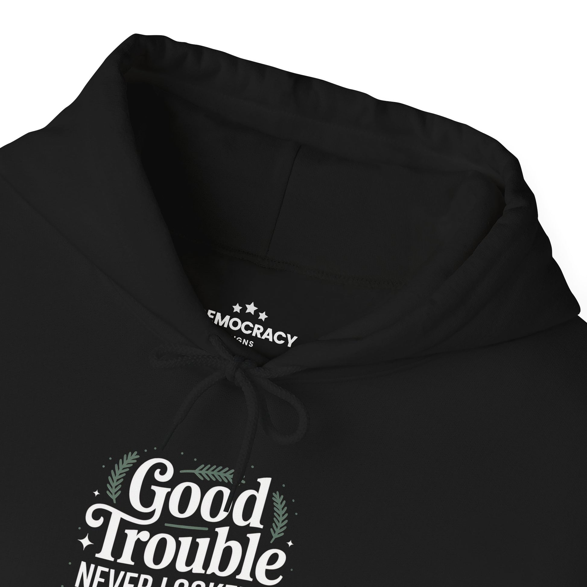 Our “Good Trouble Never Looked So Festive” hoodie combines cozy comfort with a bold, pro-democracy message that celebrates the season in style.