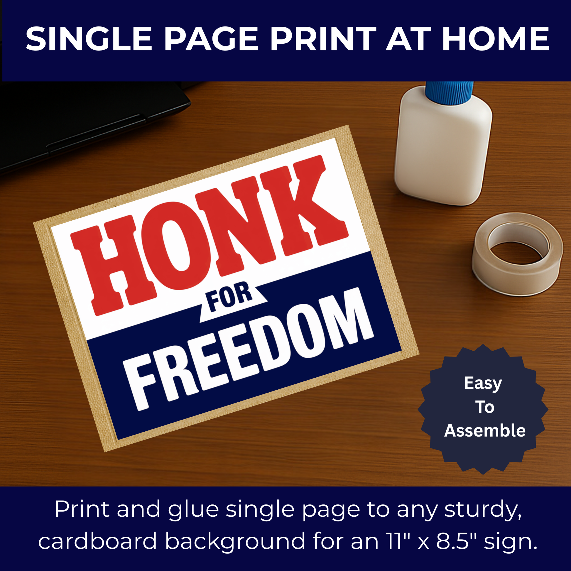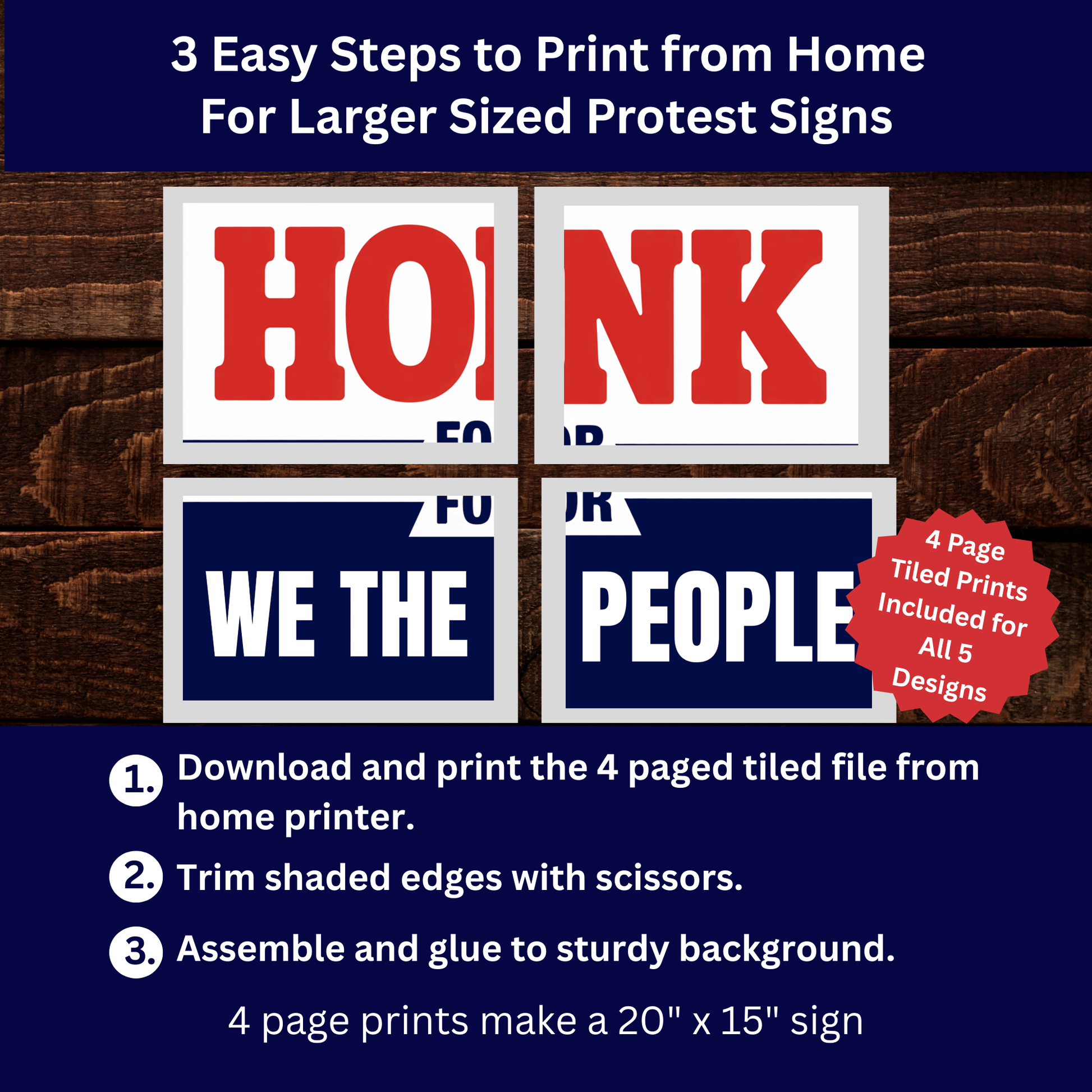 Honk for Democracy Printable Sign Kit -Patriotic Signs for Protests - 5 Different Messages Included