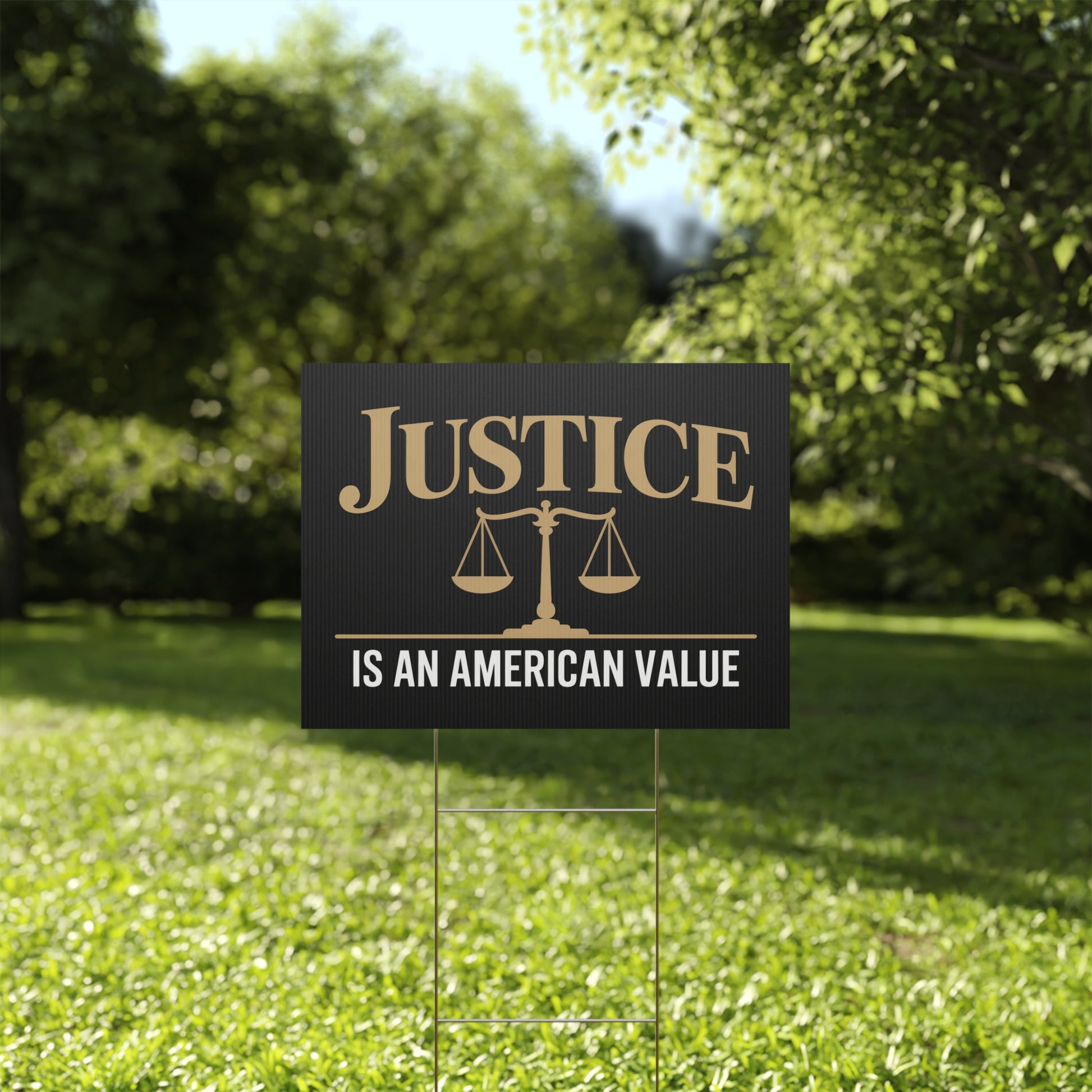 Justice Is An American Value | 24" x 18" | Print on Both Sides | H Stake Included | 3 Colors Available