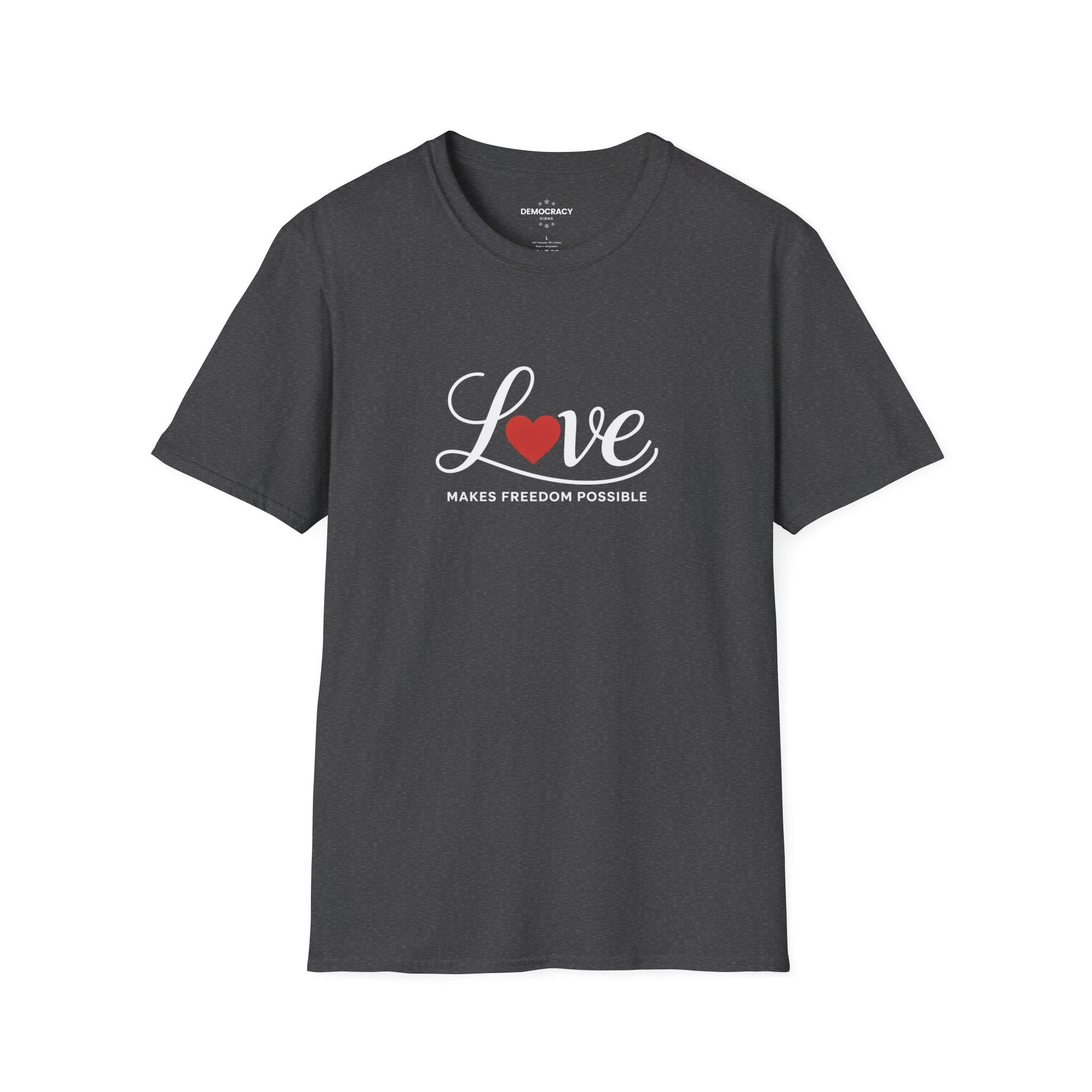 Love Makes Freedom Possible T-Shirt | Inspirational Civic Love Message | Valentines Day Shirt | Unisex Style | Multiple Colors