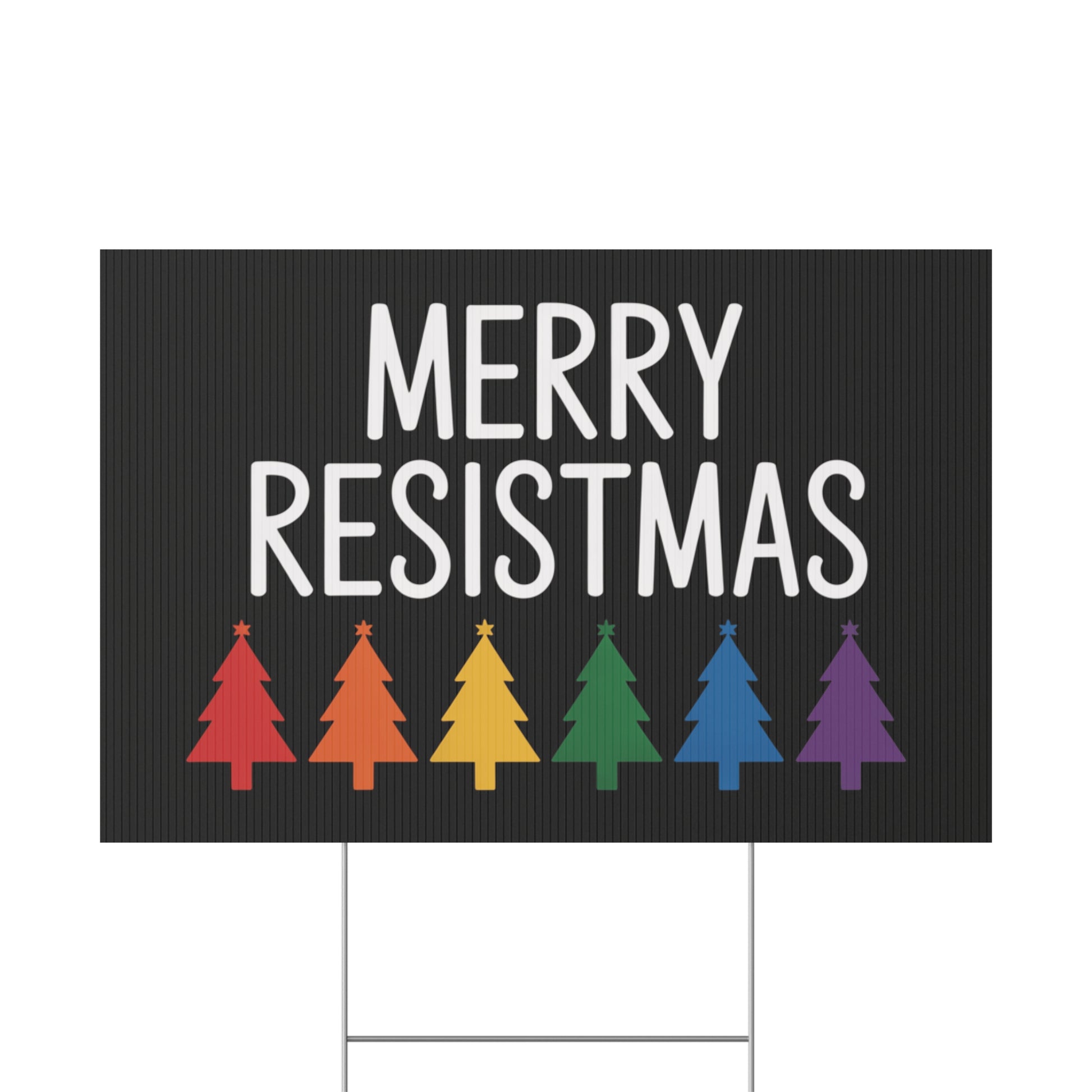 Our “Merry Resistmas” yard sign adds a bold dose of holiday honesty to your décor.