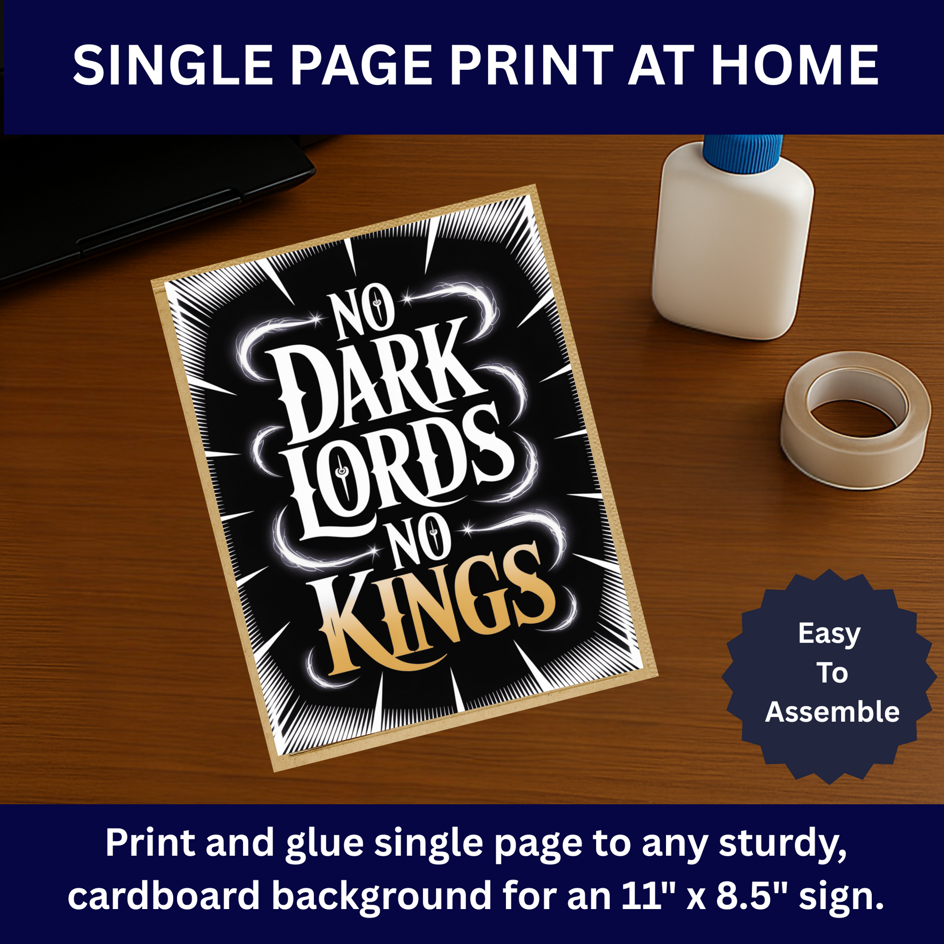 No Dark Lords No Kings Protest Sign, Printable Protest Sign, No Kings Digital Protest Sign