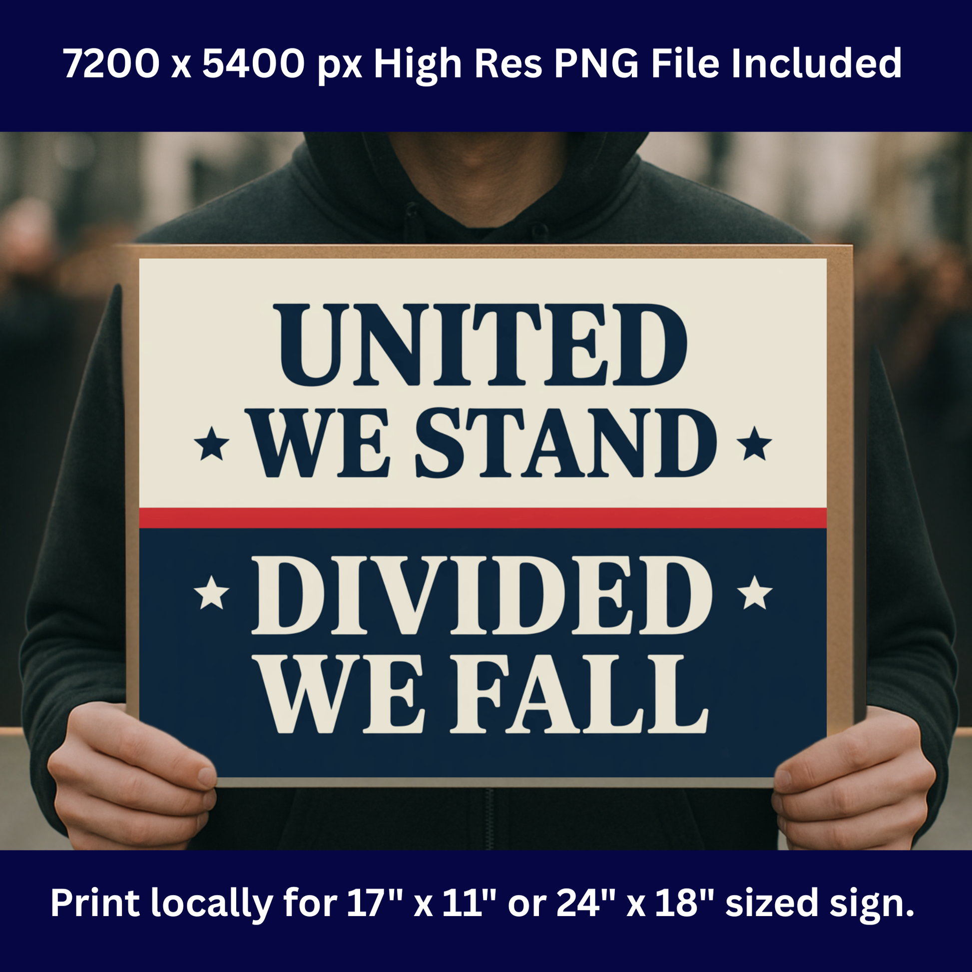 No Kings Protest Sign - Printable Protest Sign Kit - United We Stand Divided We Fall