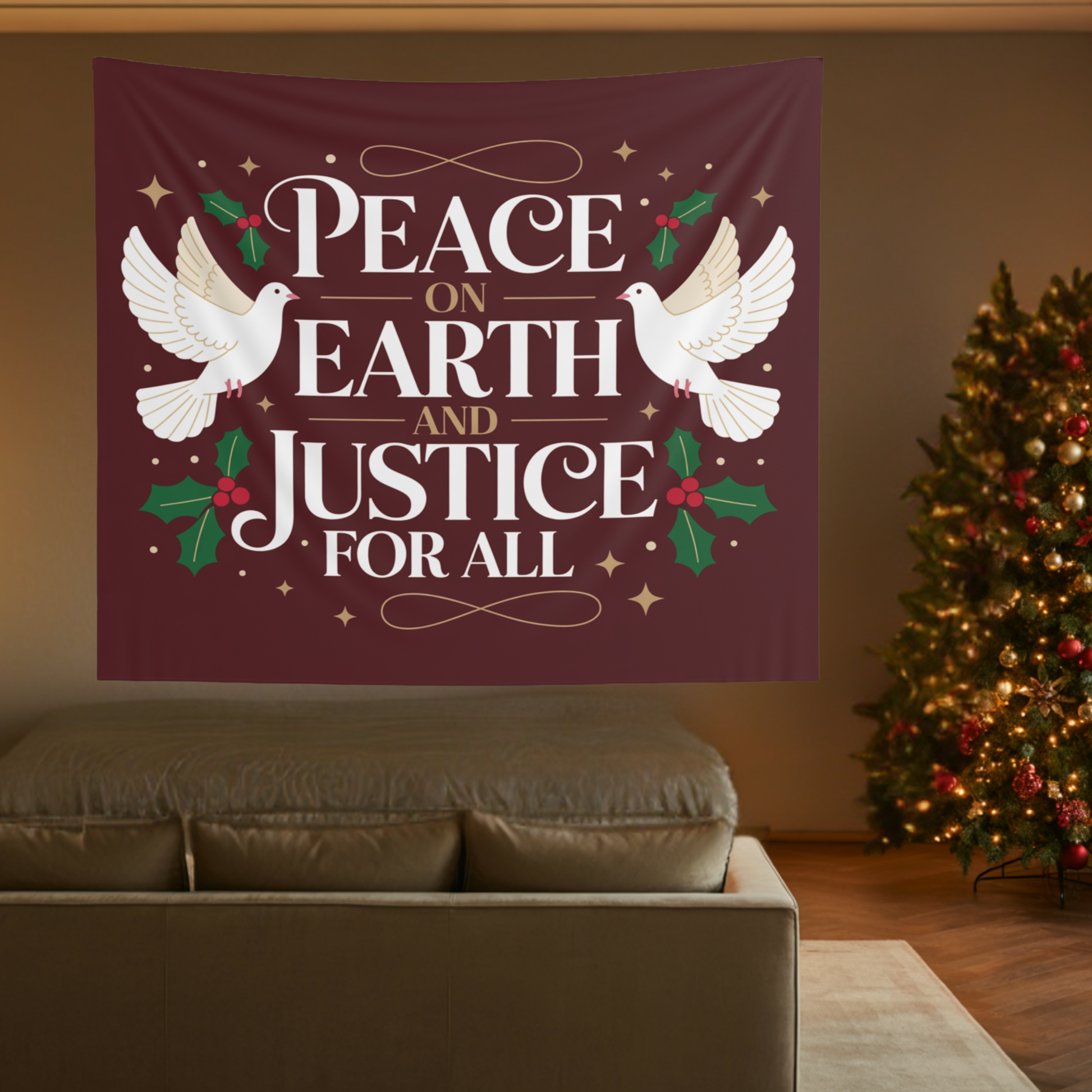 Peace on Earth Indoor Wall Tapestry | Christmas Wall Decor | Christmas Wall Tapestry