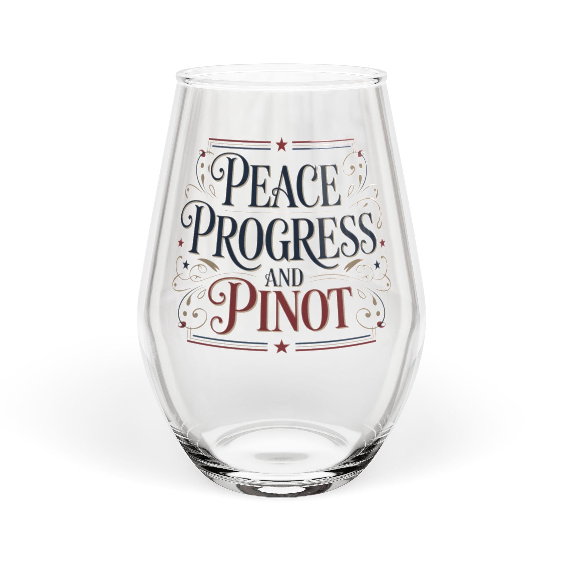 Peace, Progress and Pinot Stemless Wine Glass, 11.75 oz, Anti Trump Gift, Freedom Gift, Patriotic Gift, Gift for Democrat