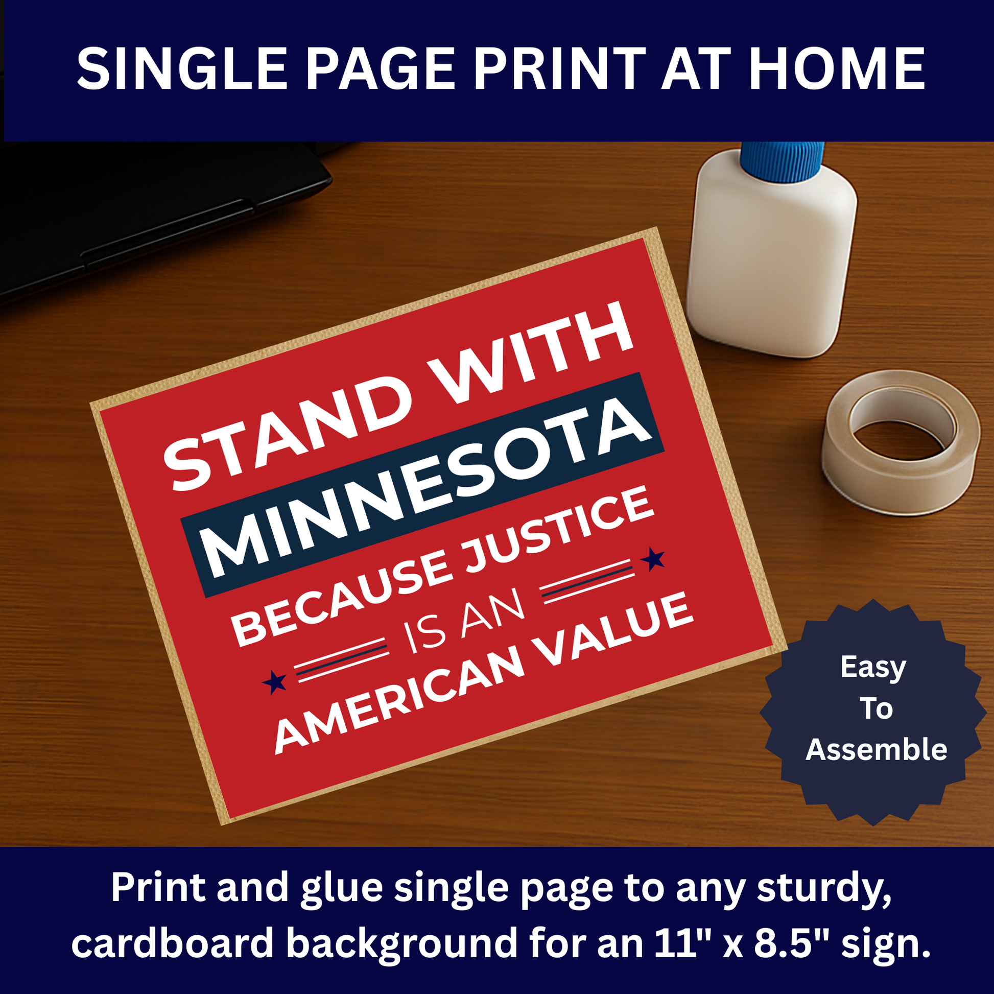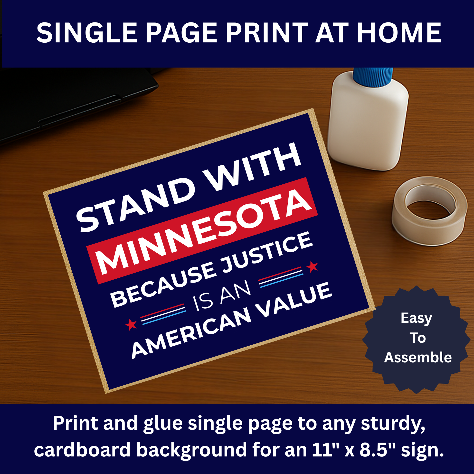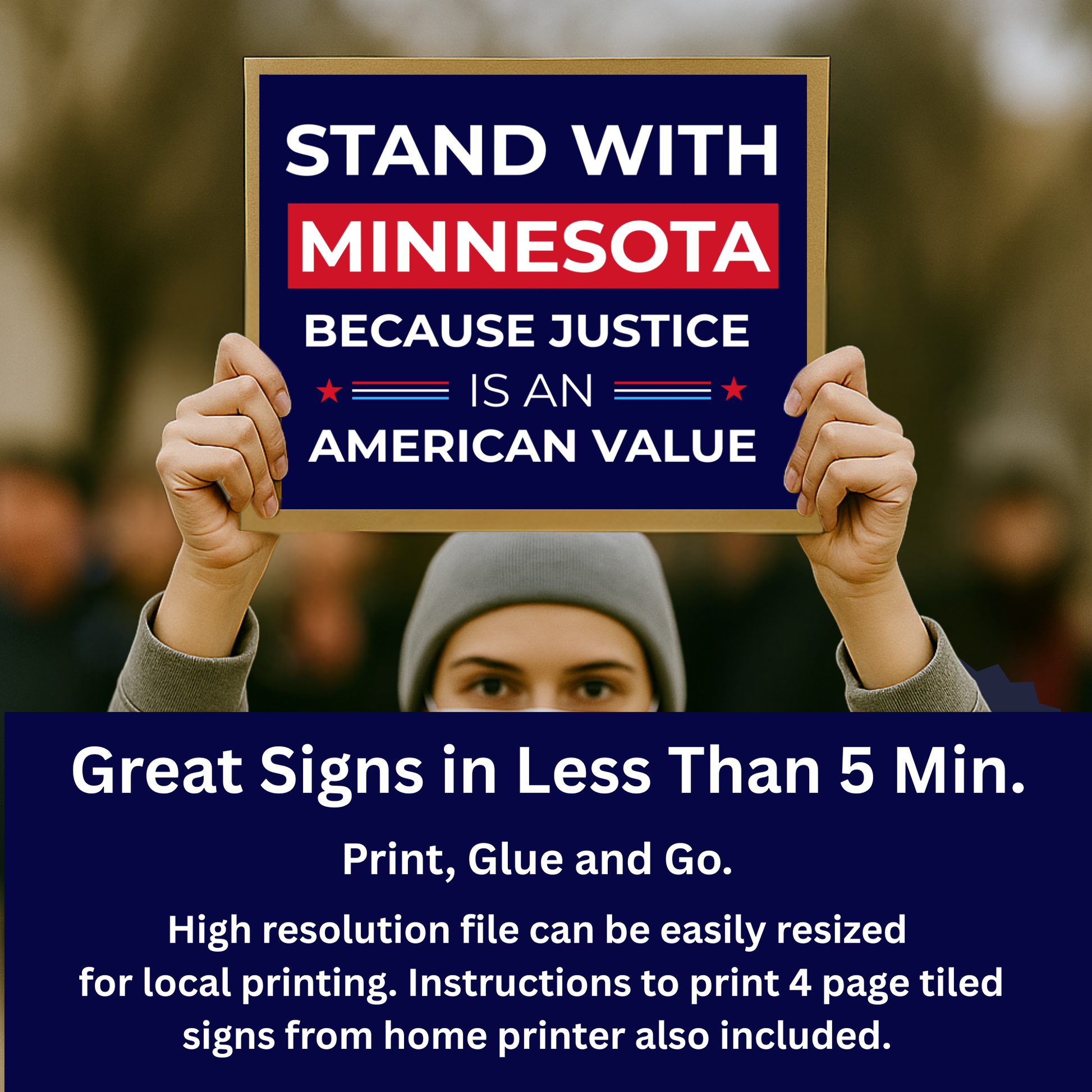 🖨️ Stand With Minnesota Because Justice is an American Value is designed for instant download, this item is ready to print at home or resize for professional enlargements.