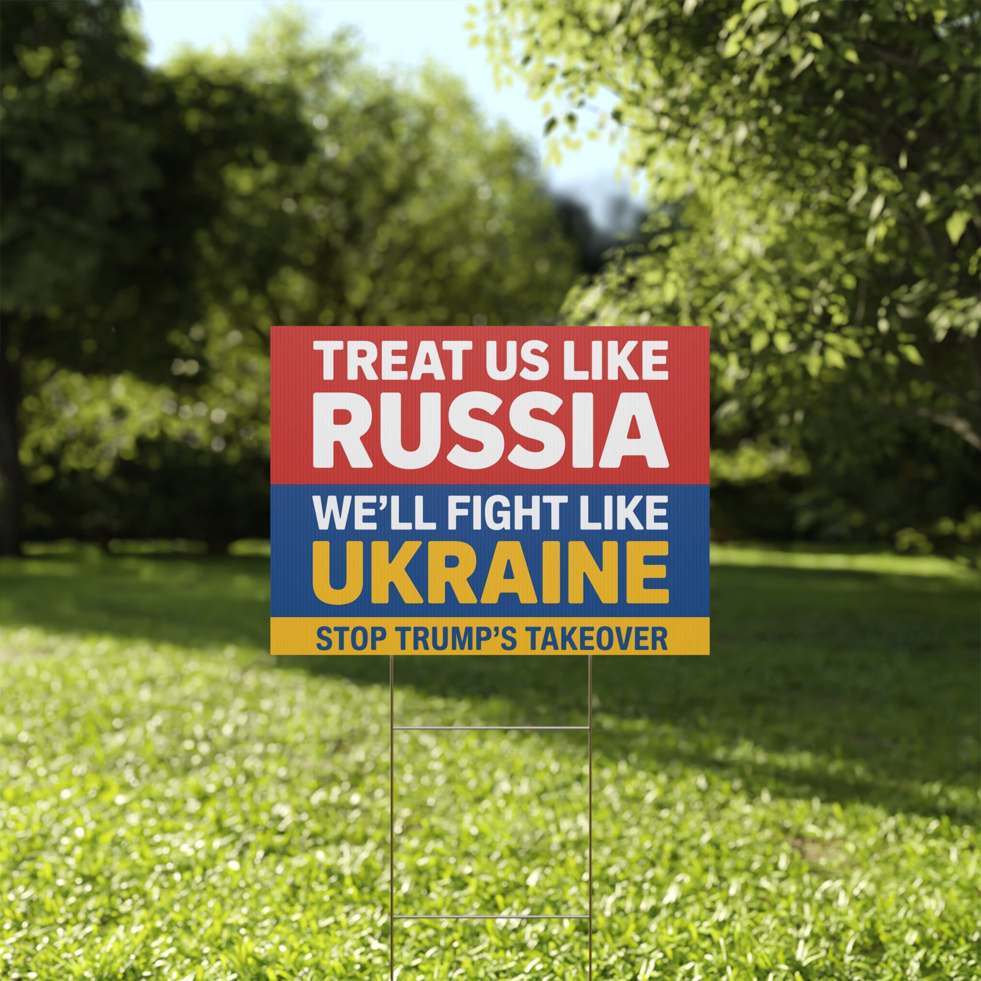 Treat Us Like Russia — We’ll Fight Like Ukraine | Stop Trump’s Takeover Yard Sign (24" x 18")