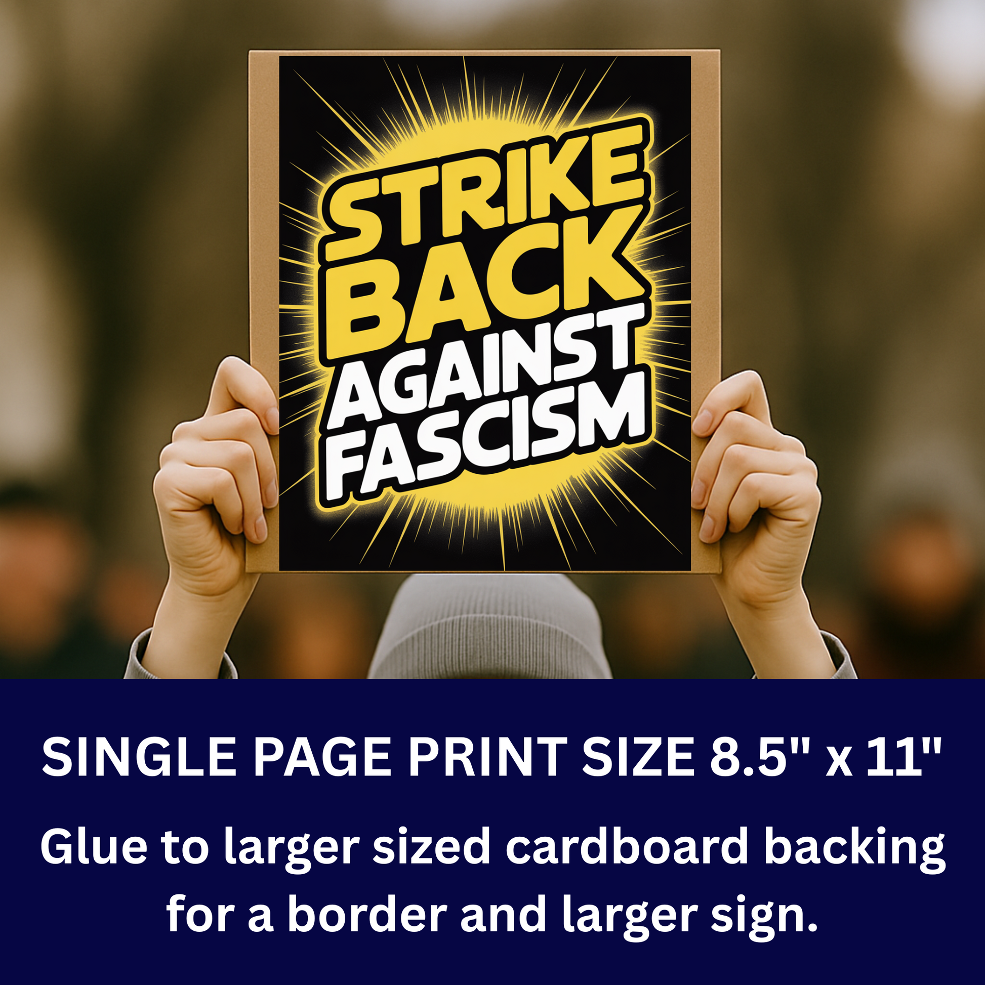 Strike Back Against Fascism Protest Sign, Printable Protest Sign, No Kings Digital Protest Sign