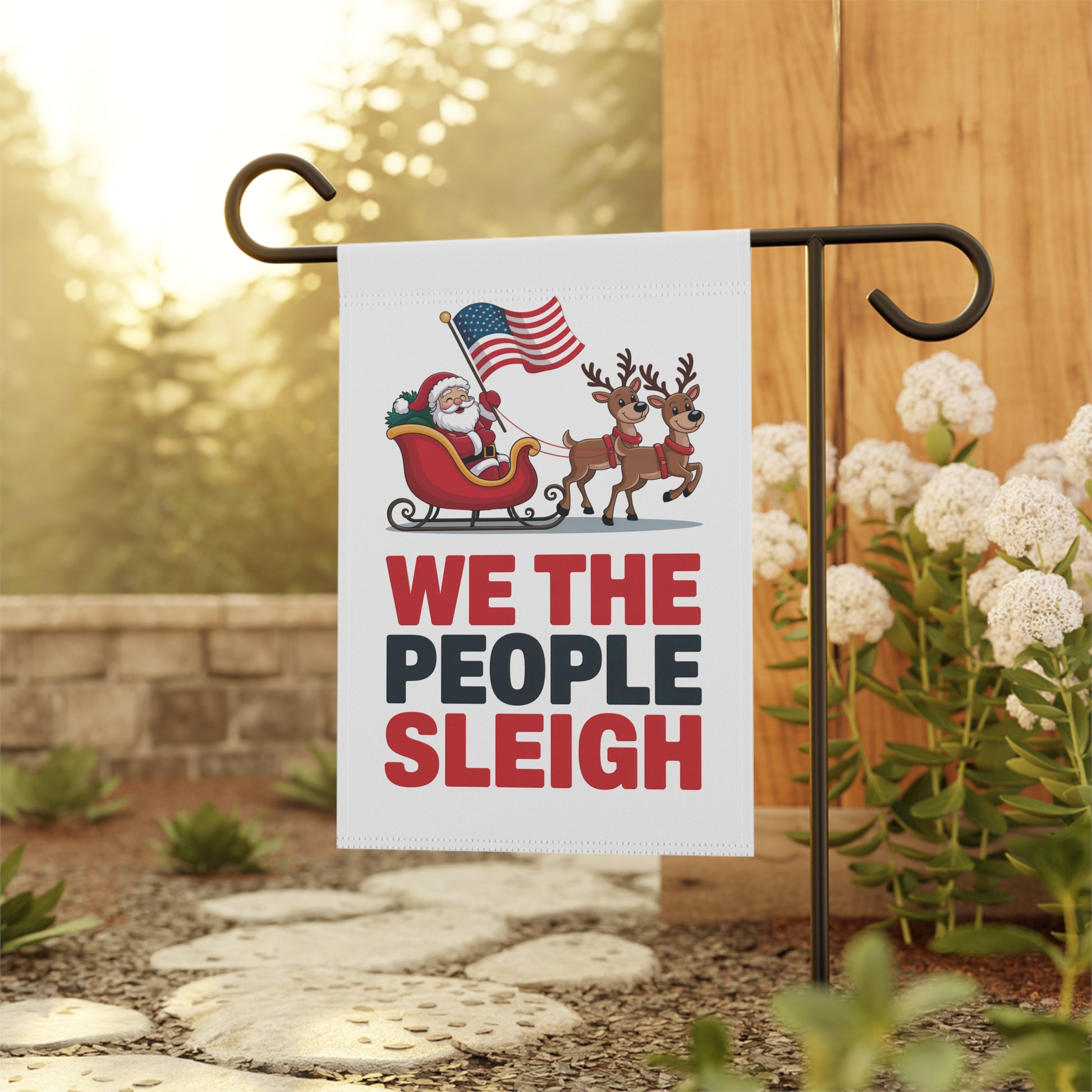We the People Sleigh Garden Flag, Christmas Garden Flag, Holiday Garden Flag, Funny Political Holiday Decor, Democracy Gift, Free Shipping