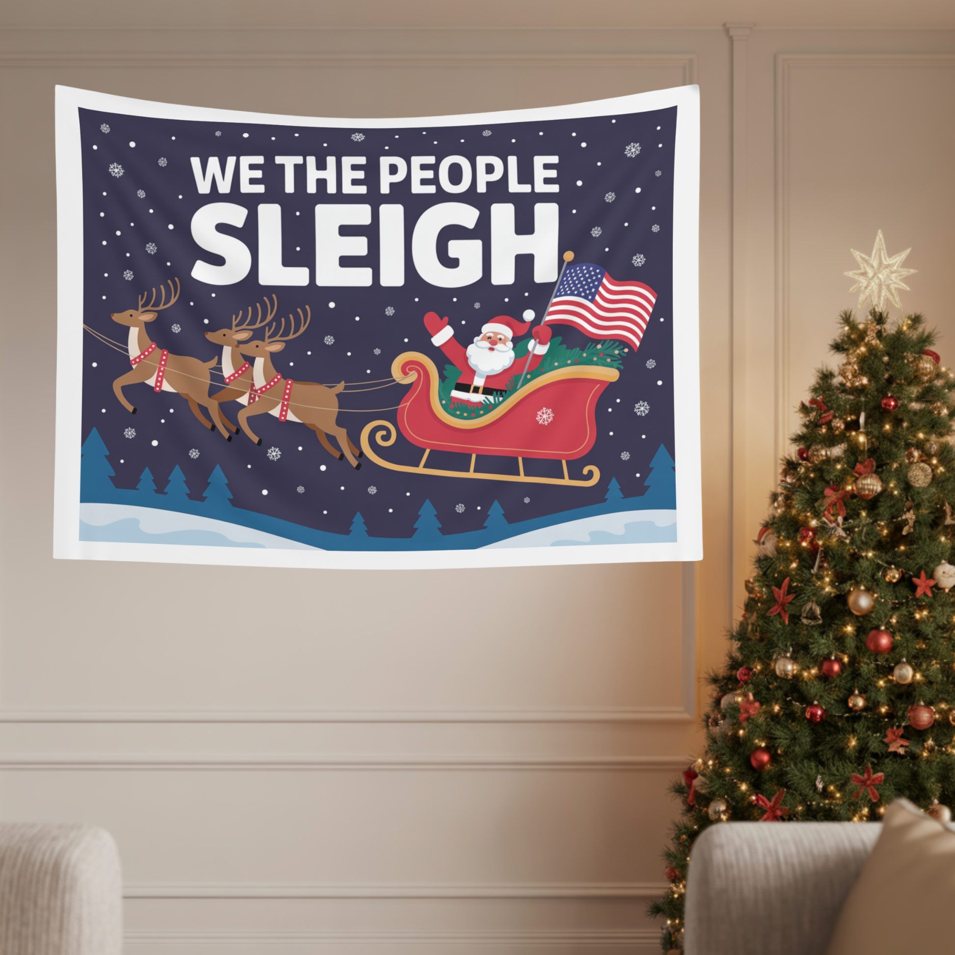 We the People Sleigh Indoor Wall Tapestry | Christmas Wall Decor | Christmas Wall Tapestry | Christmas Party Signs