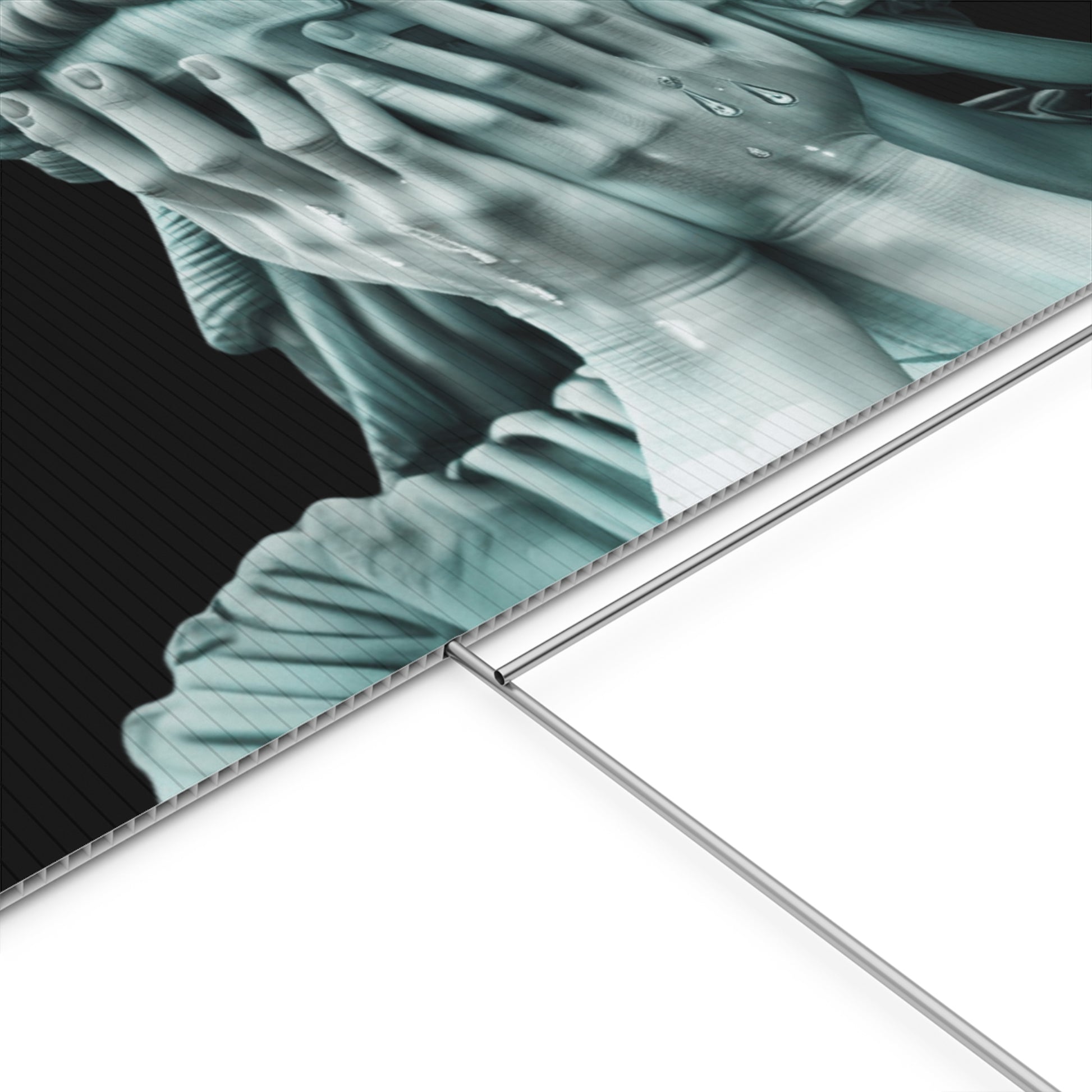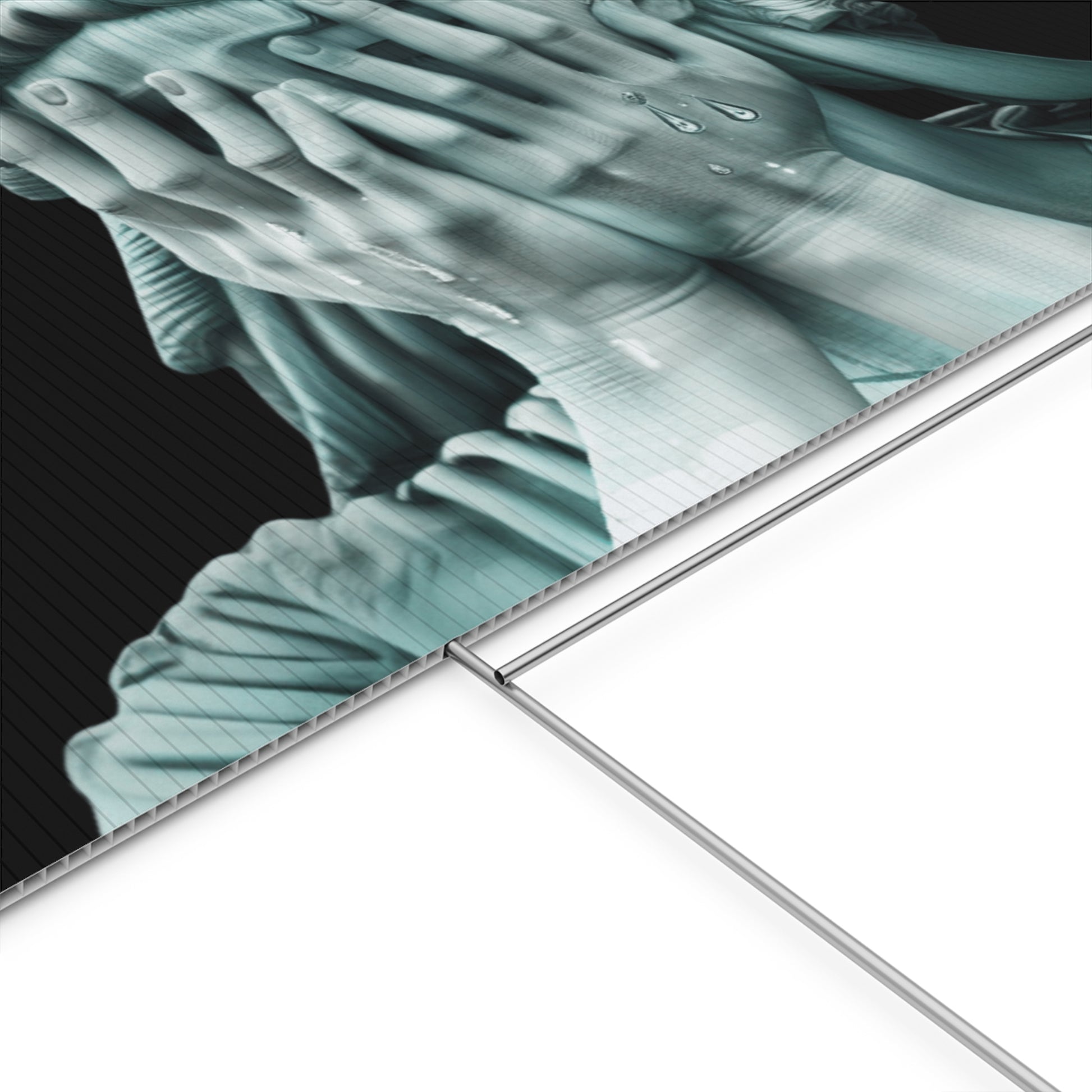 This pro-democracy lawn sign features the Weeping Statue of Liberty design, capturing the emotions of voters who care about democracy. Printed on both sides for maximum visibility, it delivers a bold political statement.