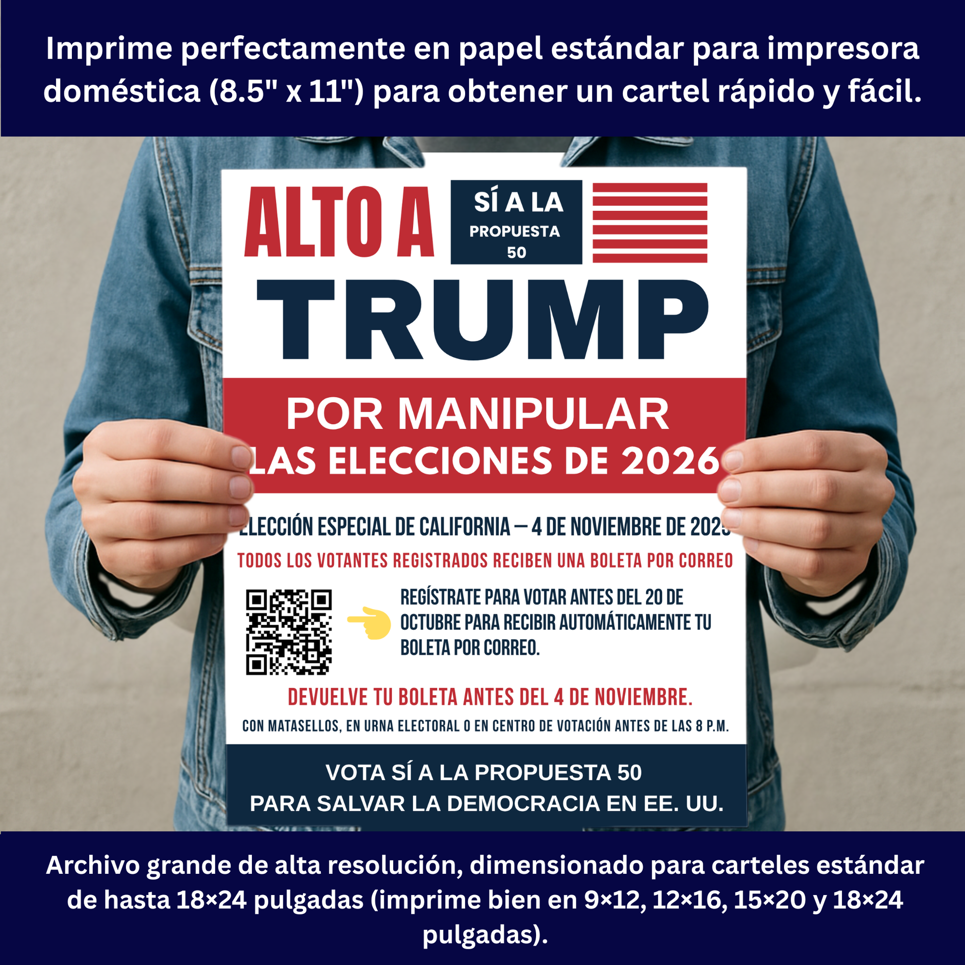 ALTO A TRUMP – KIT DE PÓSTER IMPRIMIBLE BILINGÜE SÍ A LA PROPUESTA 50