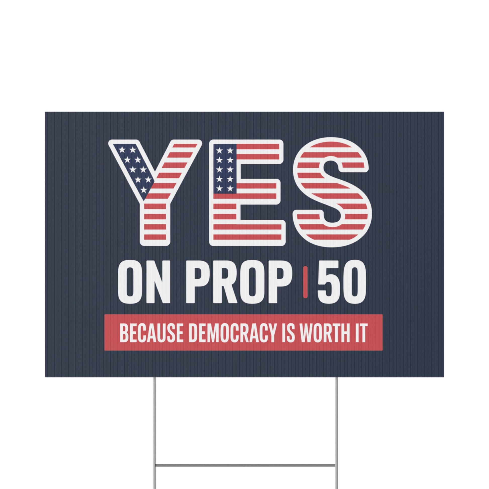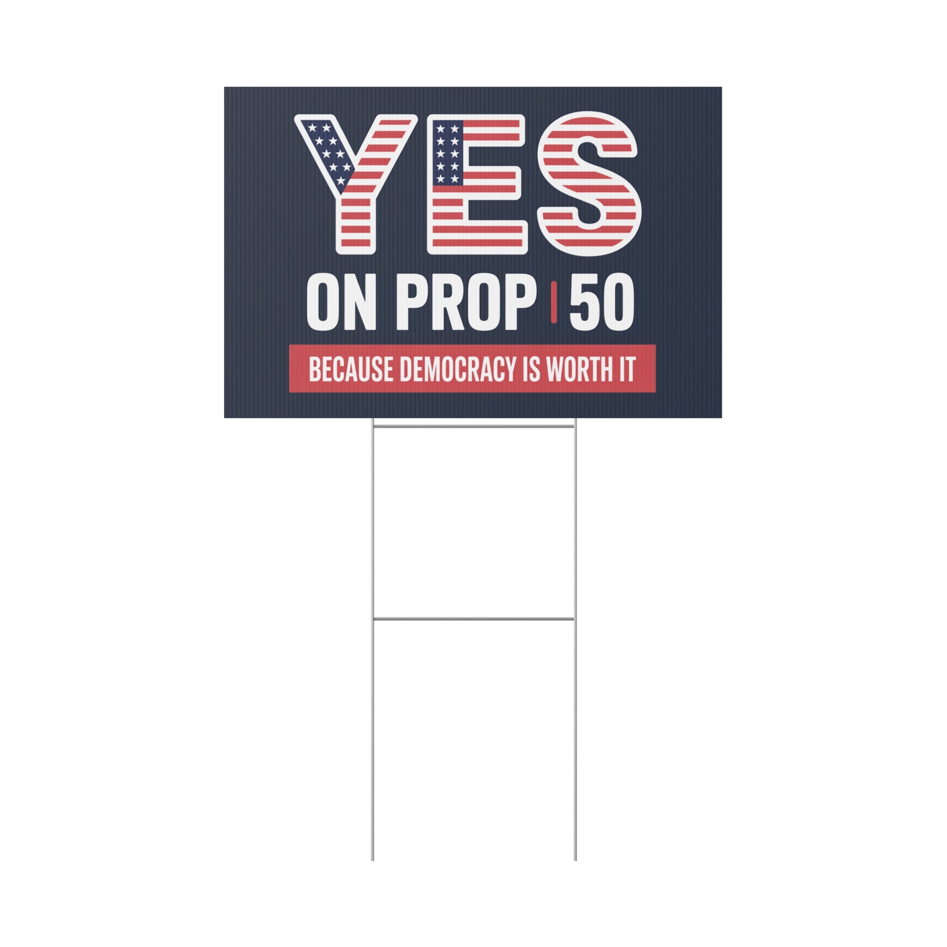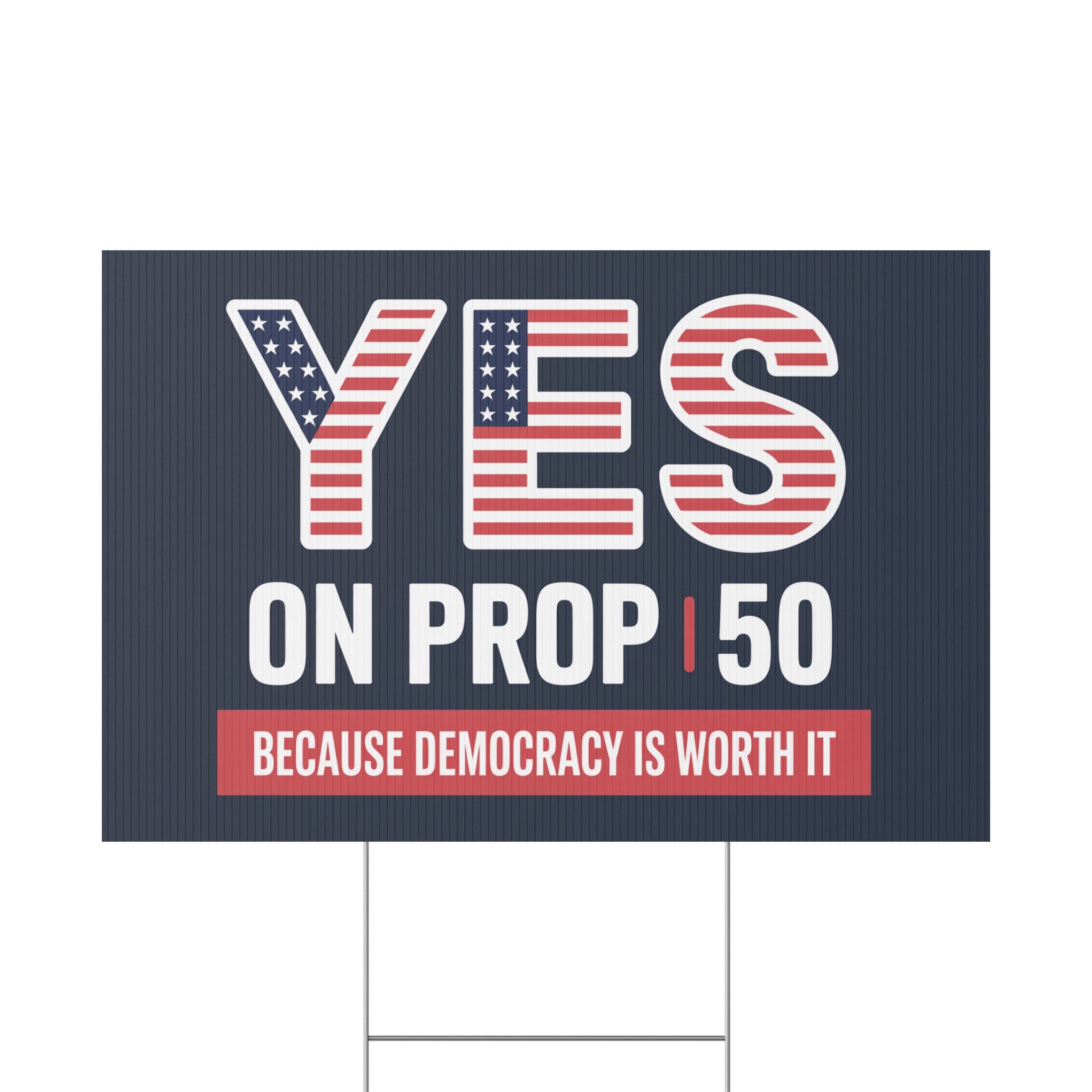 Yes on Prop 50 Because Democracy is Worth It — Election Rigging Response Act Yard Sign - Bulk Orders Only - Print on Both Sides - Mounting H Stake Included