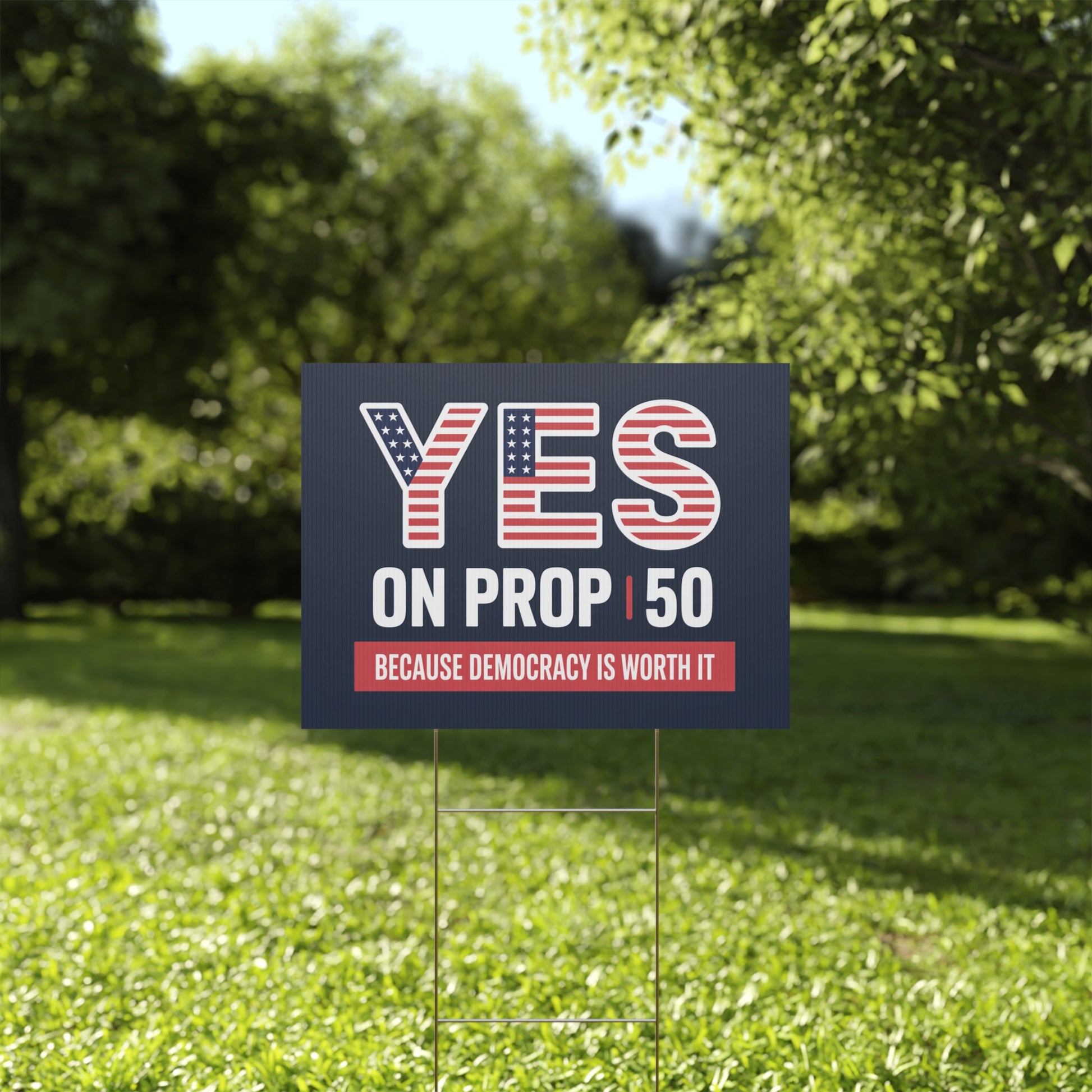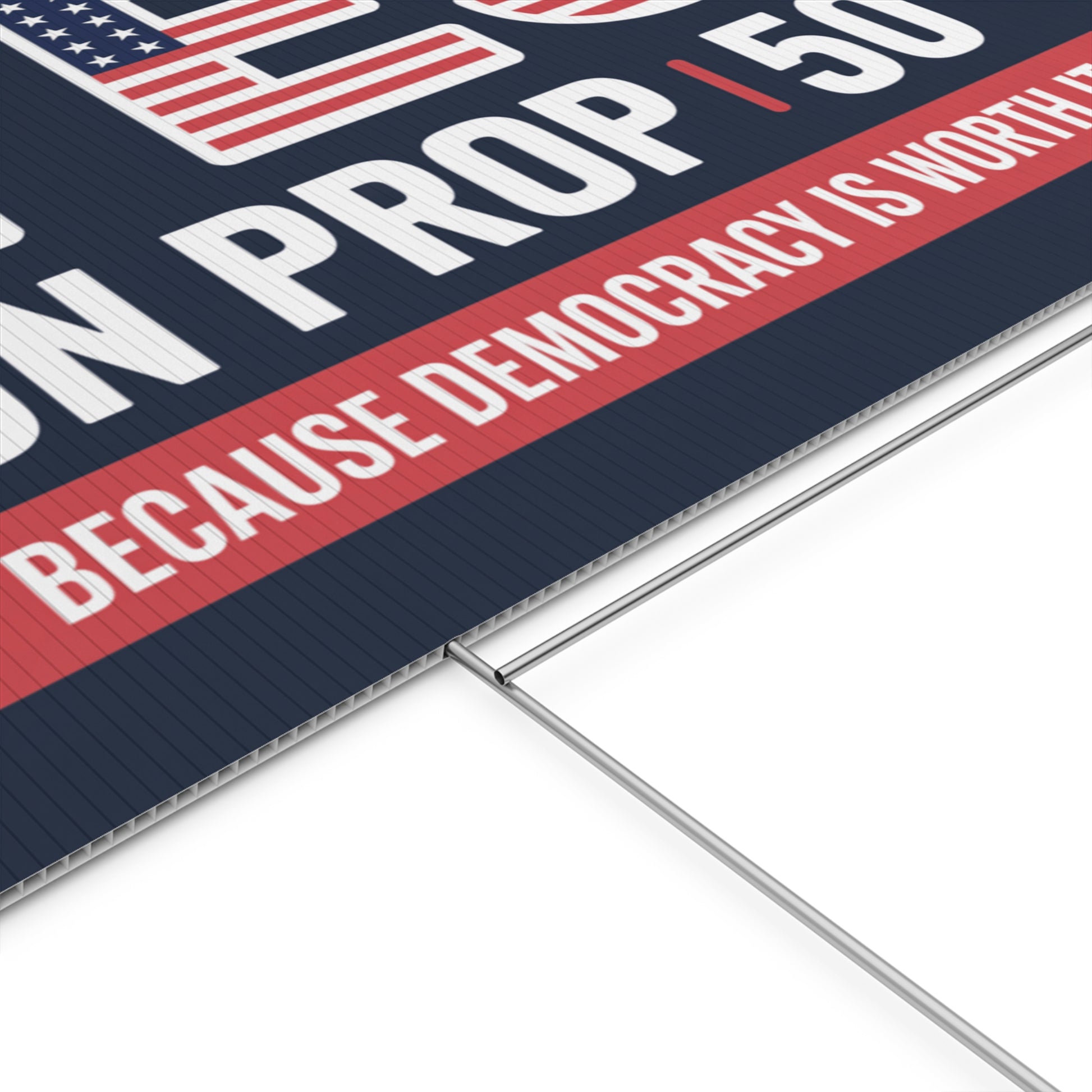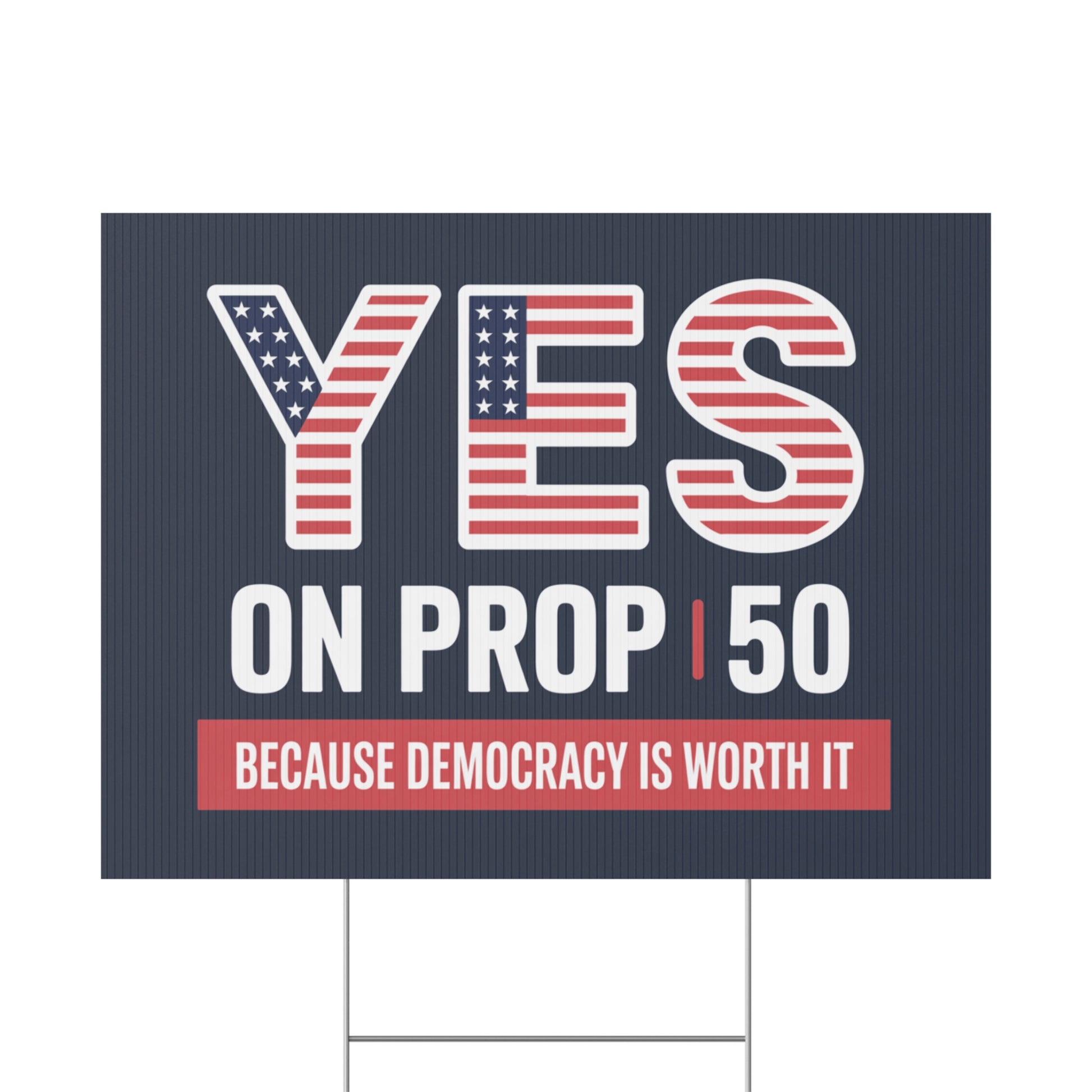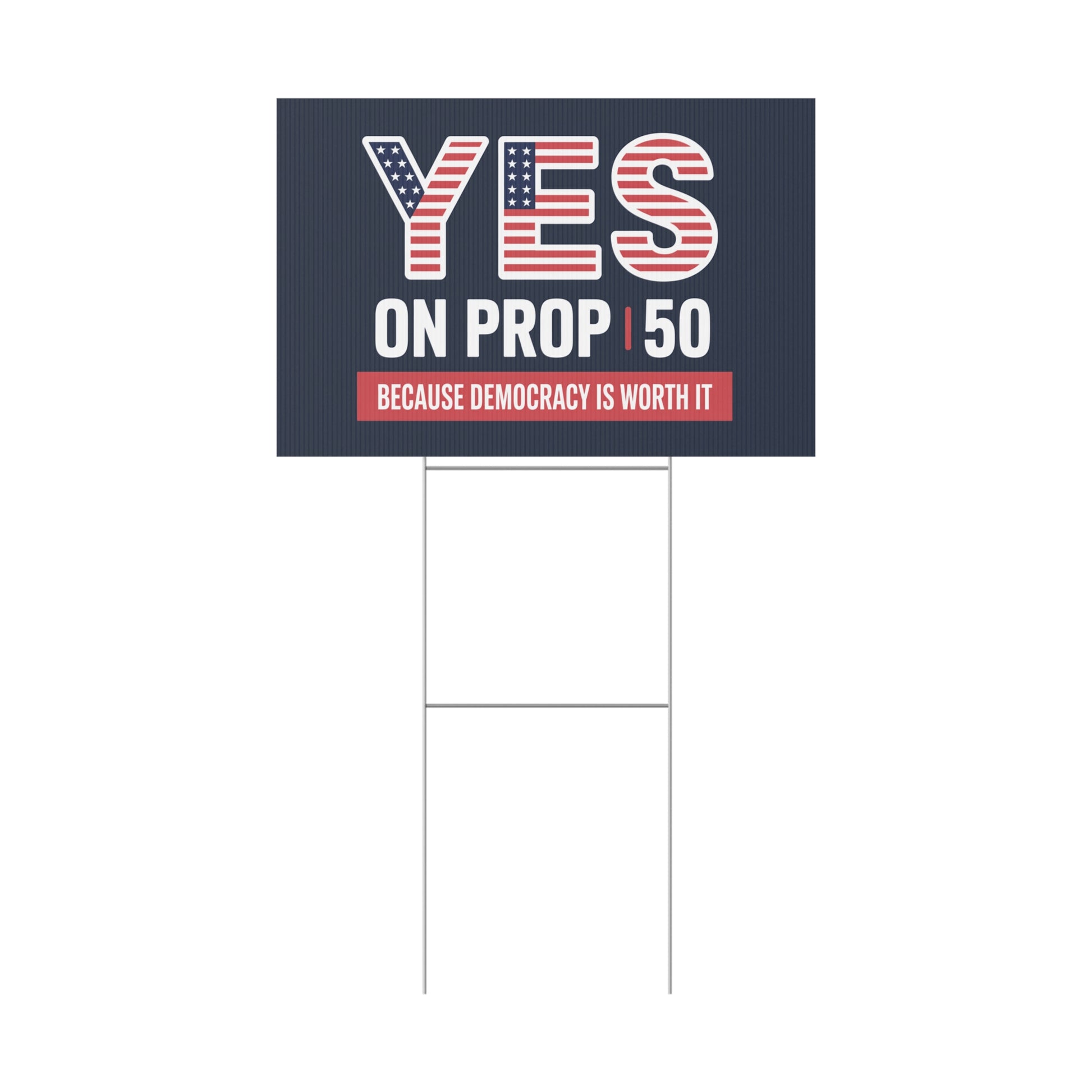 Yes on Prop 50 Because Democracy is Worth It — Election Rigging Response Act Yard Sign - Bulk Orders Only - Print on Both Sides - Mounting H Stake Included